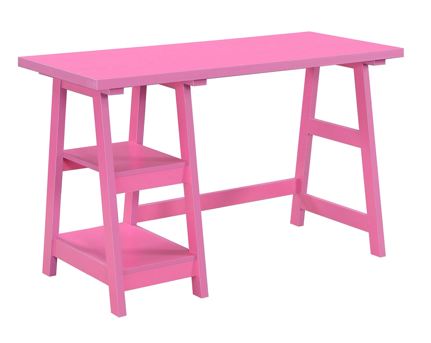 This little desk is perfect for any home office. It’s 47″ top is large enough to accommodate your computer comfortably, and small enough to fit into tighter spaces and small offices. There are two built in shelves that are great for keeping your supplies and other knick-knacks handy, and the pink finish adds a nice splash of color so your work area doesn’t feel drab. This desk is also very quick and easy to assemble so you get it up and ready to work on in no time! This is a great and simple option that will meet all your needs.