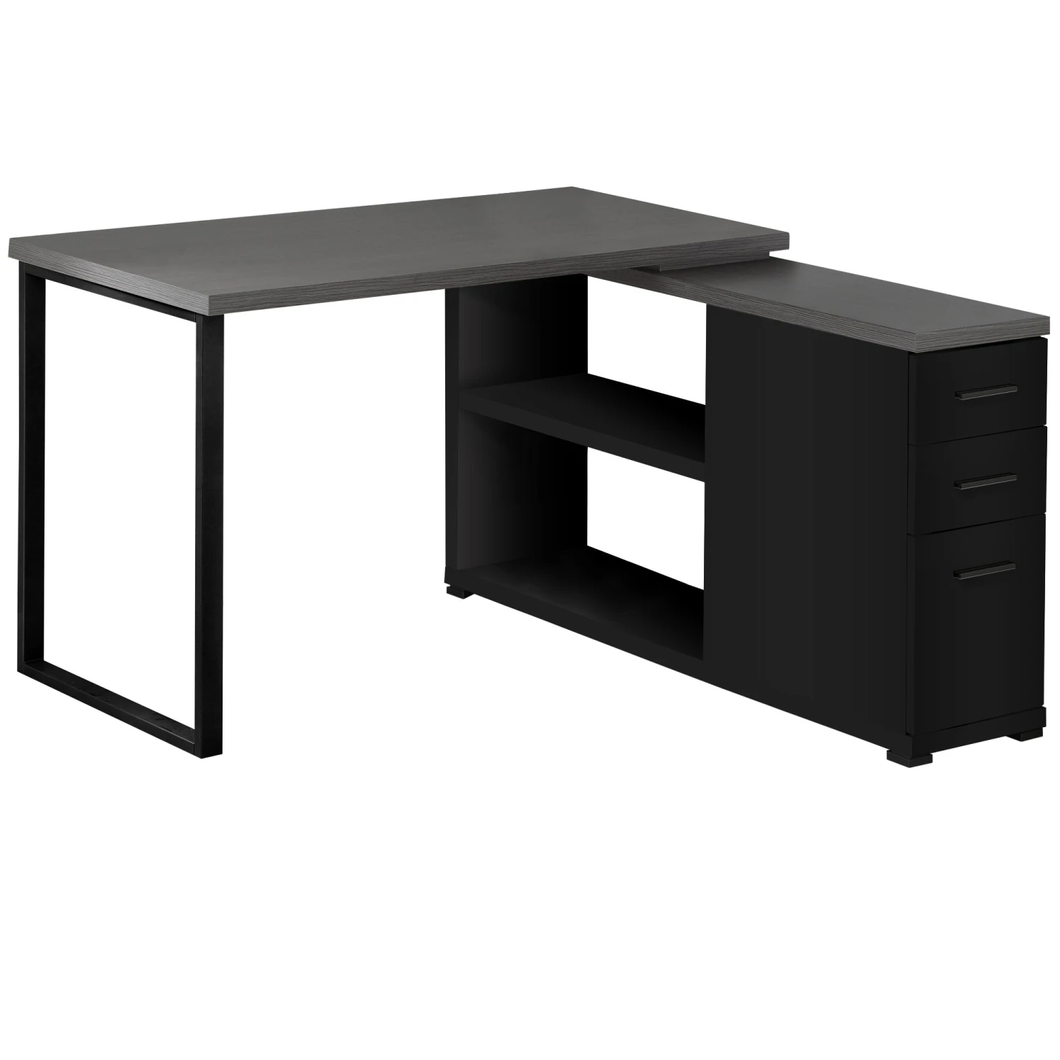 Shape this desk to fit your space perfectly with the reversible design, placing the credenza to the left or right of the simple desktop. The open design keeps this desk from feeling cluttered or confining, while still offering plenty of storage. The credenza holds three drawers and two shelves to support all of your project needs.