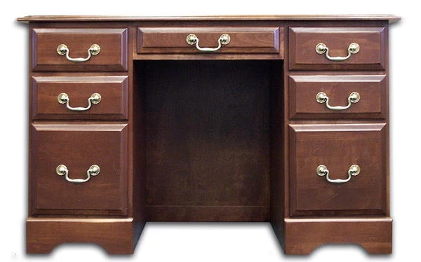 This luxurious desk from Haugen is, like all of their desks, handcrafted out of solid wood and built for you upon your order. It is made here in the USA out of the finest materials and with the best in manufacturing processes. This desk offers not only premium quality that will last a lifetime but also a great look and great functionality, including two file drawers, four utility drawers, a pencil drawer, and a roomy desk top to get work done. All drawers are also on smooth ball bearing slides for quiet and easy operation.ย You have your choice of cherry finishes: natural cherry, merlot cherry, chestnut, ebony, and brown cherry.