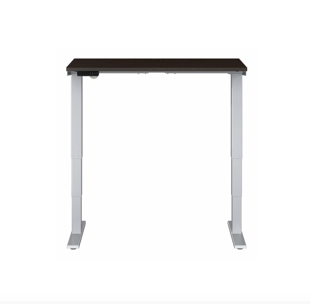 With commercial-grade quality at a great value, this 48″ height-adjustable standing desk from BBF is a great choice. Its great looks start with its elegant two tone look, with a mocha cherry top and gray legs. It also offers clean lines and a contemporary feel. Its motorized base can quietly move the top from 28″ in height all the way up to 48″, so you can sit or stand whenever you feel the need. It also offers built-in wire management to keep your area cord free, and a 10-foot power cord for placement flexibility. It supports up to 176 pounds and comes with a 5-year manufacturer warranty, giving you peace of mind.