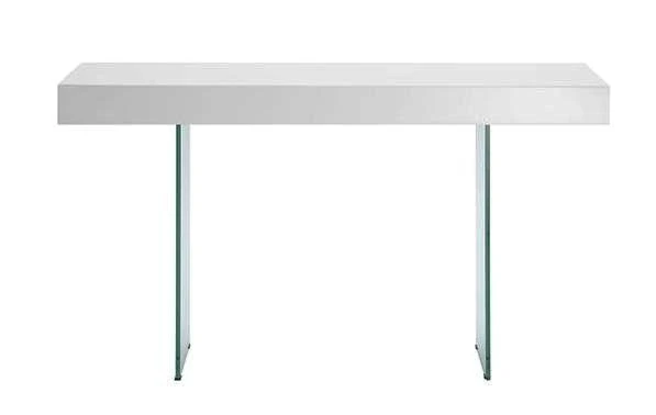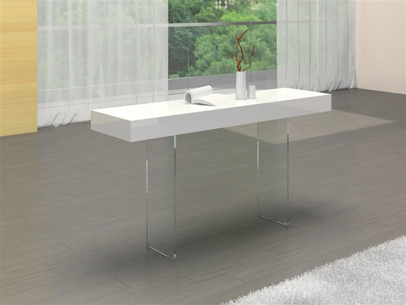At elegance and sophistication to your modern office with this gorgeous console desk. Narrow and lightweight, it’s the perfect option for a small or out-of-the-way work area. It features glass legs and a high gloss lacquer. The simple design is elegant and gives the desk a modern feel.