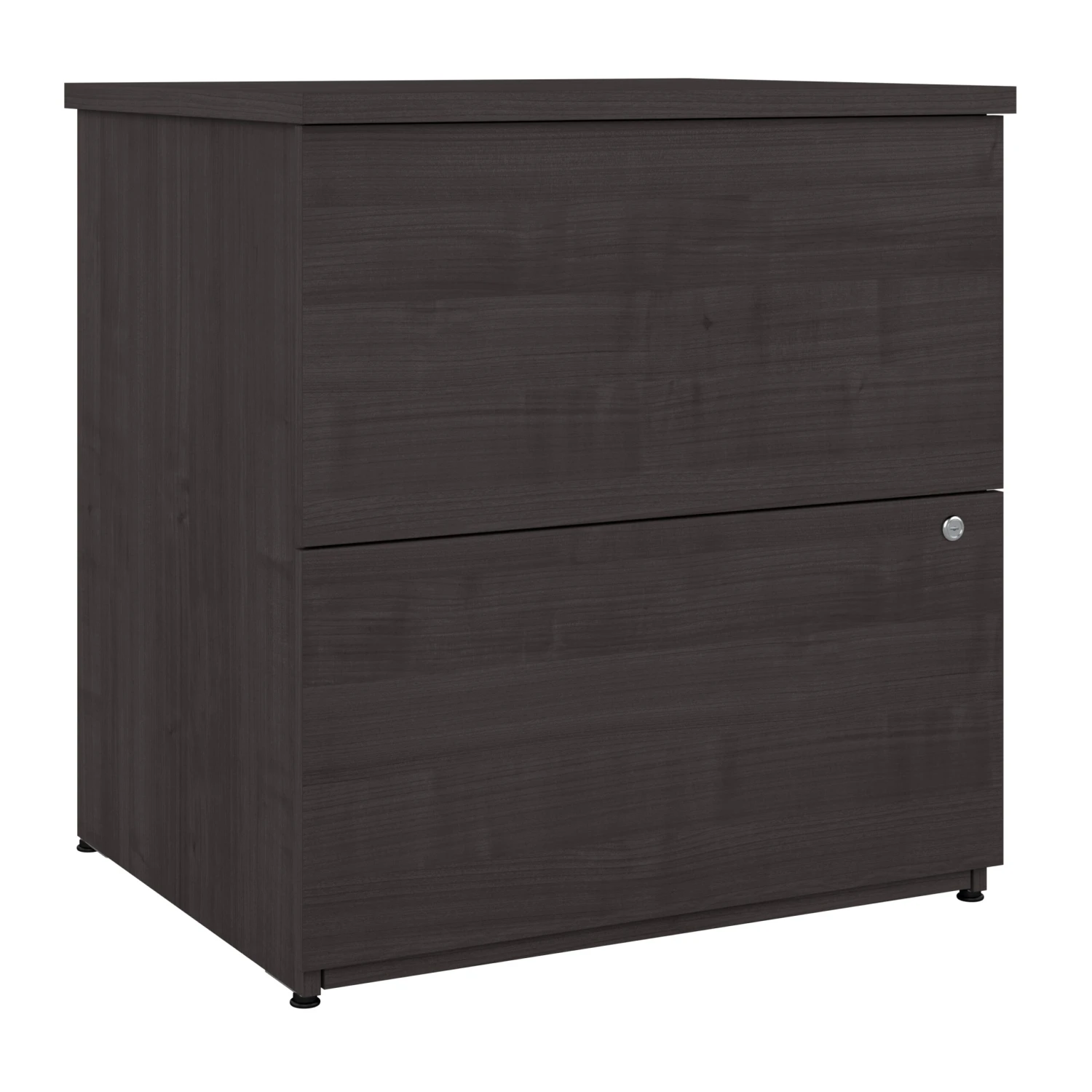 The dimensions of this desk are 65″ W X 27.6″ H X 30 ” D. The dimensions of the optional bookcase are 29.5″ W X 71.5″ H X 16″ D. The dimensions of the optional locking file are 28″ W X 24″ H X 30″ D.