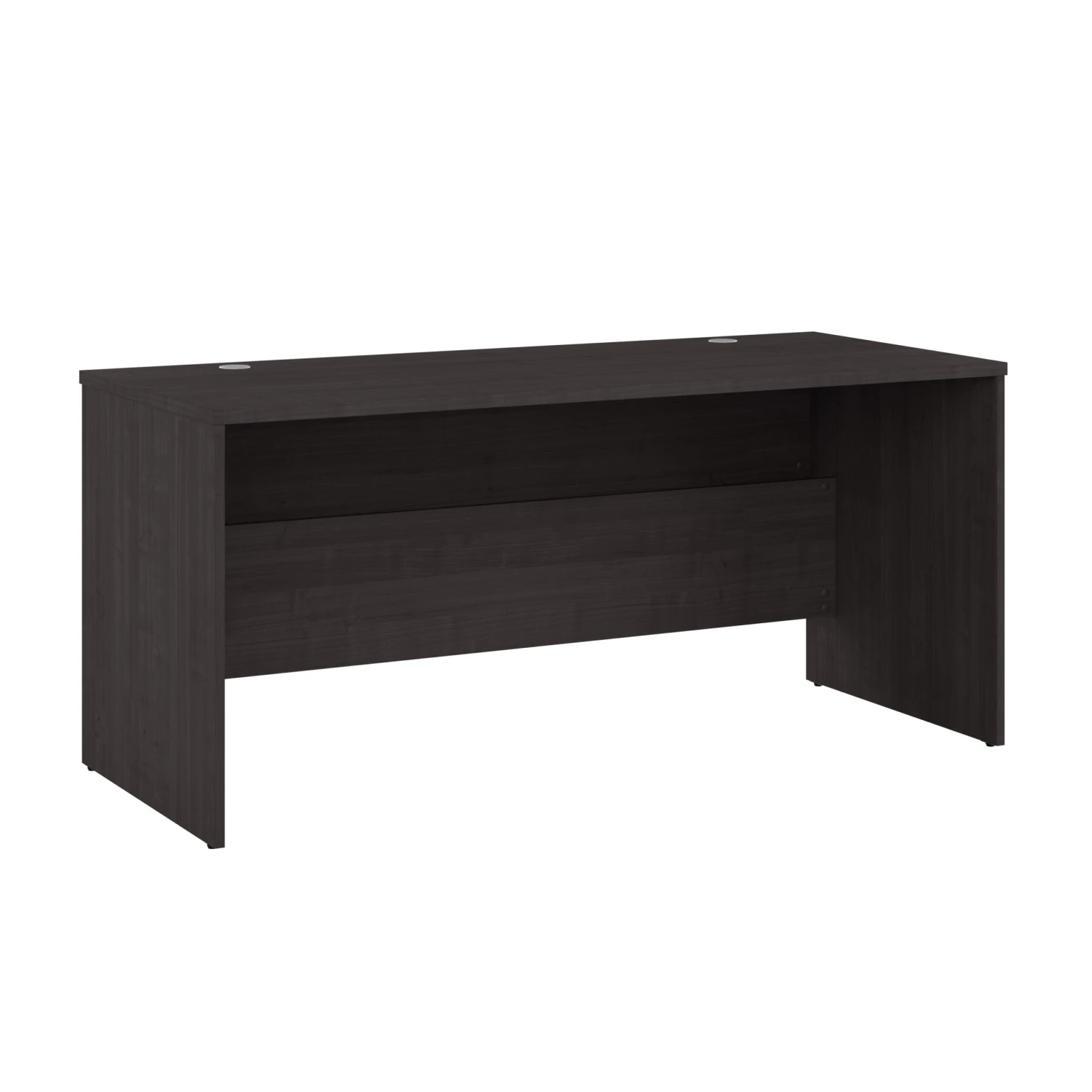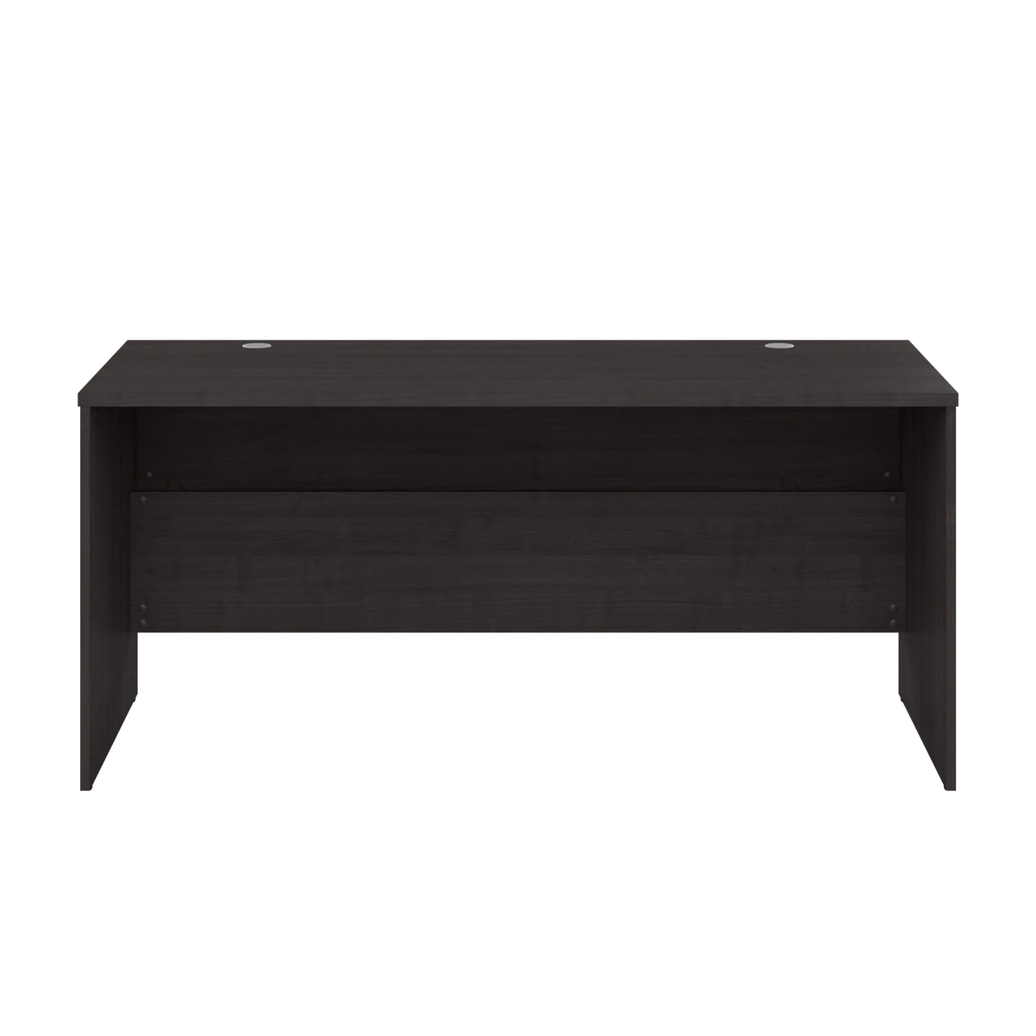 Simple, uncluttered, and elegant, this basic desk gives a generous 65″ stretch of working surface, perfect for keeping a printer, or for personal items. Two cord management grommets give extra security, while a full length modesty panel gives a degree of privacy. In a rich charcoal maple woodgrain finish with a melamine coating, this desk looks extremely modern and will stand the test of time. Add on the optional matching bookcase and file for even more office storage.