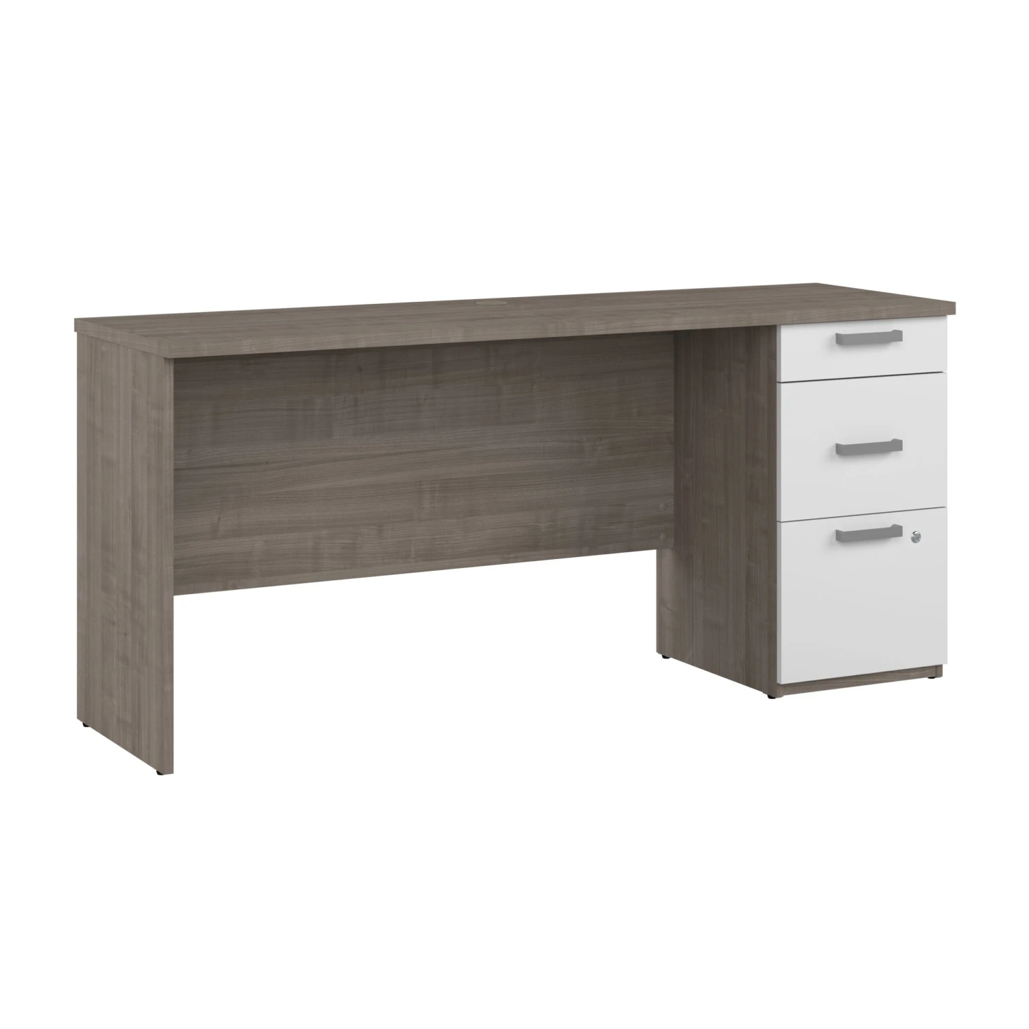 Design your dream office with this elegant modular desk. The reversible structure allows for the included locking 3-drawer file to be installed under either end of the desk. Add it to an existing desk for an L- or U-shaped design, or leave it solo for an already expansive workplace. In a crisp satin white and warm silver maple finish, it blends with a variety of modern office decor. Add on the optional matching bookcase and file for even more office storage.
