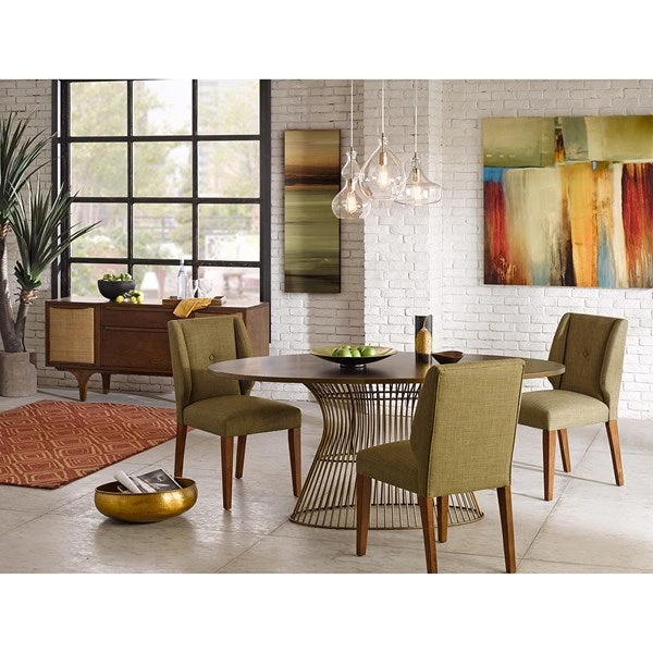 This oval meeting table from JLA promises to add a mid-century look to any work environment. This piece features a two-tone birch veneer top and antique bronze wire frames, giving it a sophisticated edge. Its table top allows plenty of space to spread out and organize documents.ย