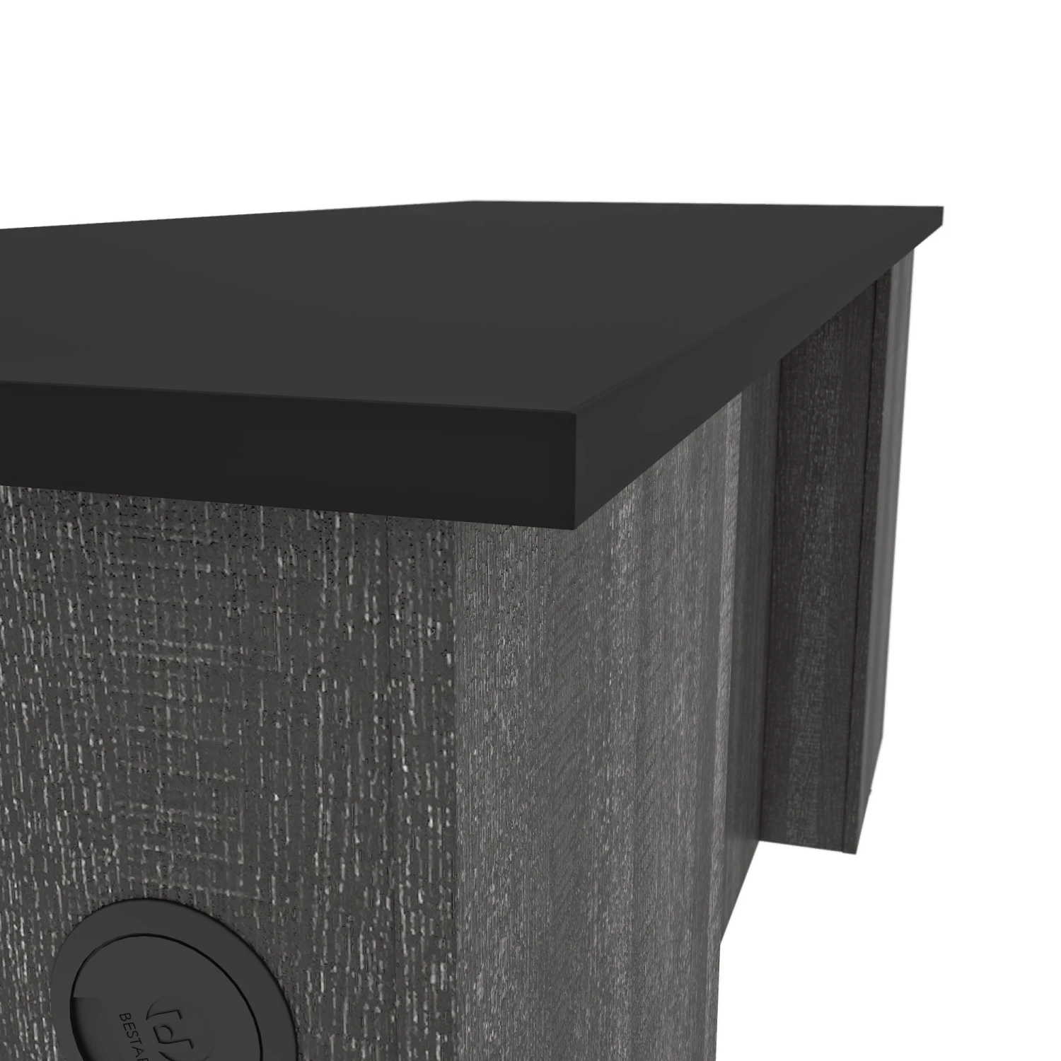 This bark gray & black desk from Bestar features clean, modern lines, a roomy desk top, and two grommets for wire management. You’ll have plenty of leg room and also plenty of privacy with the fully finished back. The desk also comes with leg levelers to make sure your surface is secure and level, and the surface is coated with melamine to prevent scratches, stains, and wear. The commercial grade 1-inch thick top and deluxe PVC edges add an assurance that this piece will last you for the entirety of its included 10-year warranty! If you need space for files, add on the optional matching bark gray lateral file or bookcase.