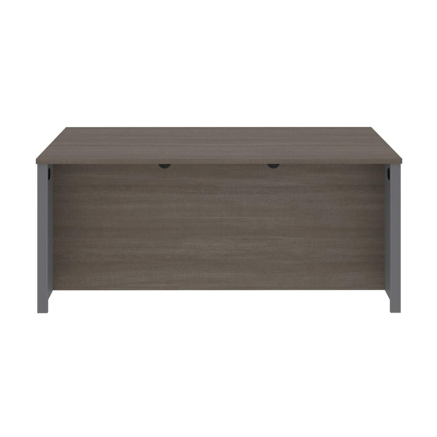 This elegant desk in a bark gray and slate finish is clean, modern, and professional.ย It makes a pronounced statement to any who enter an office, and offers high end quality; with melamine-coated surfaces to prevent stains & scratches, premium edges, and a wire management system to keep your area cord-free. You will have plenty of space to spread out your latest project on the large 71″ X 30″ desk top. Backed by a 10-year manufacturer warranty. In need of more storage? Add on the optional matching bookcase and file.