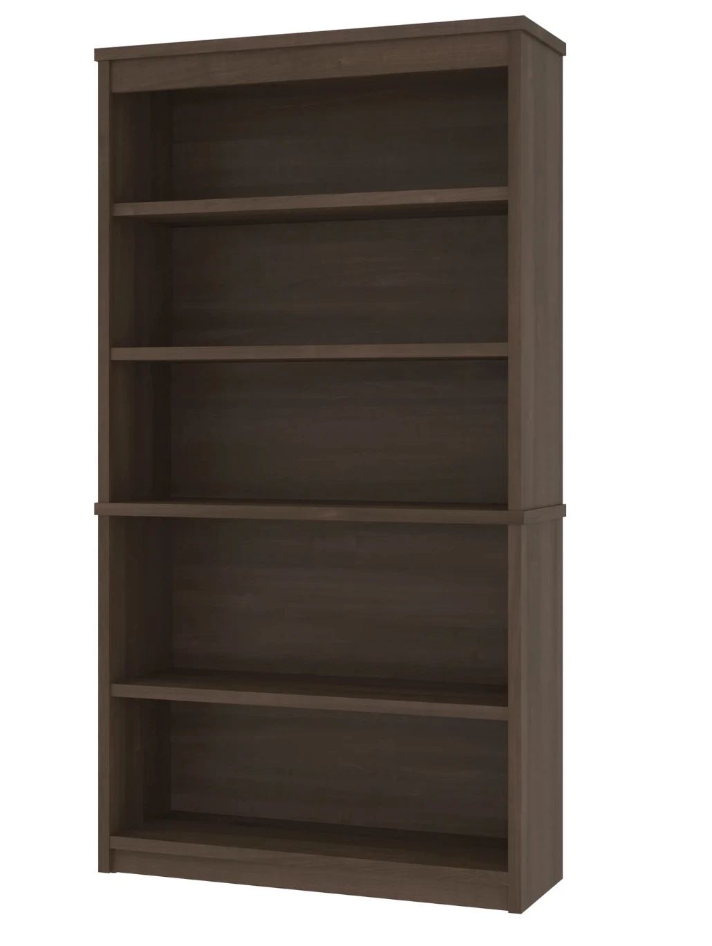 The dimensions of the desk are 71″ W X 83″ D X 66″ H. The dimensions of the filing cabinet are 30.8″ W x 19.6″ D x 30.4″ H. The bookcase sits at 36″ W X 12″ D X 66″ H.