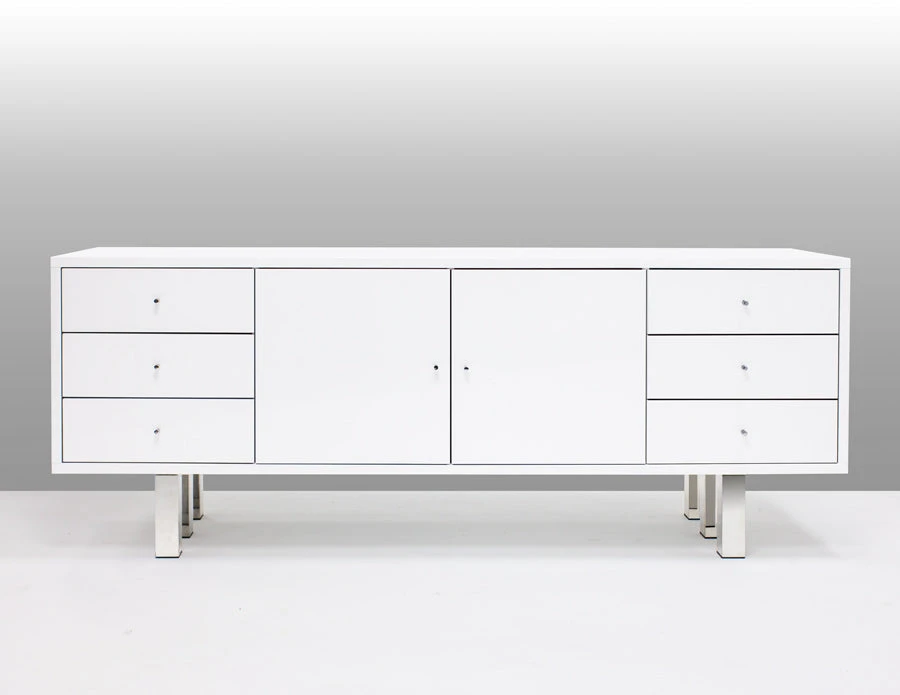 Elegant white lacquer and chrome finishes combine for a great, modern look.ย This head-turner will add a unique look to any office space while helping you stay organized with its six roomy drawers and two large cabinets.ย It is also constructed with precision by high end manufacturer Sharelle Furnishings!