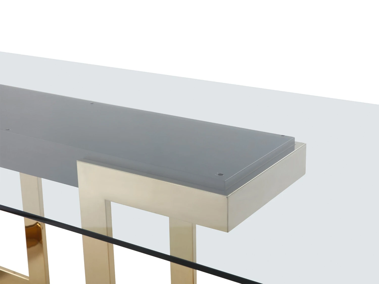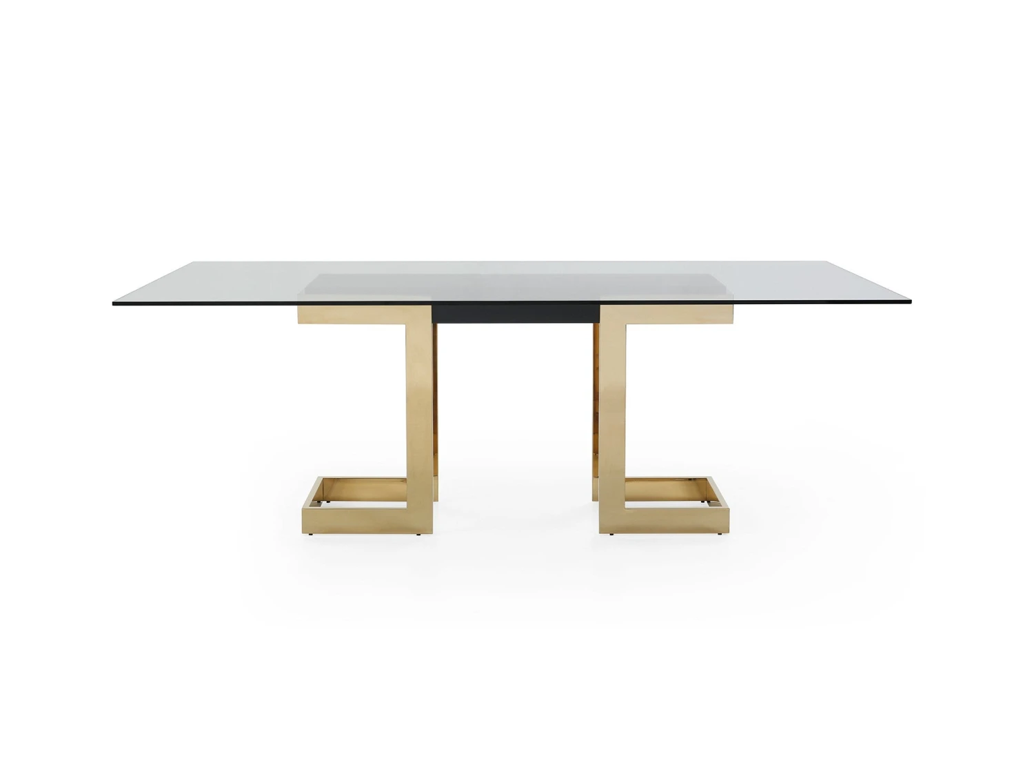 This glass conference table from Whiteline Modern will serve as a gorgeous centerpiece for your office. As you and your team spread out to meet around it, you will not only be impressed by how much space you have to work, but also with how the contrasting colors and materials combine to create such a chic, modern piece. The gold stainless steel, black lacquer, and clear glass come together to make a unique, impressive piece. If you need storage, consider adding on the optional matching storage credenza.