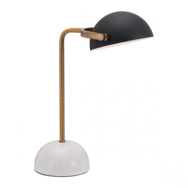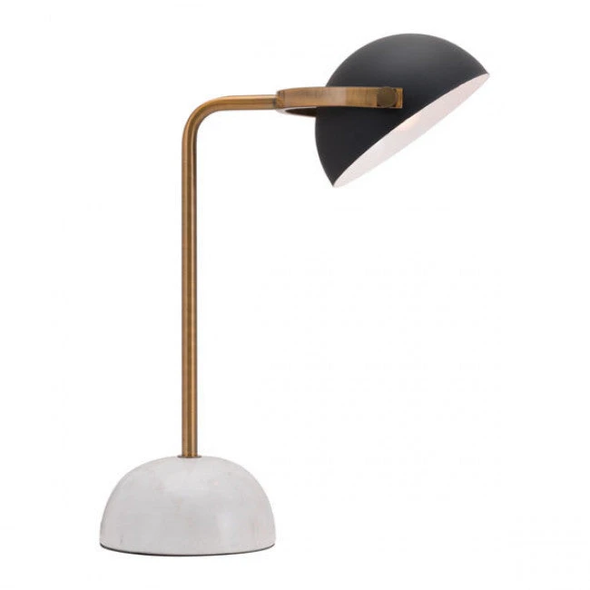 Add a little light to your office space with this elegant desk lamp. It features a solid marble base with a gold stand and a black lampshade. It has mid-century flair, and an adjustable shade so you can aim light however you need. This is a great option for placing on your desk, side table, or credenza.Â