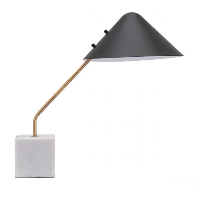Simple and elegant, this officeย desk lamp is just what you need to add light on a credenza, desk, or bookcase. It features a simple, conical black hat, with a gold stem and a marble base.ย