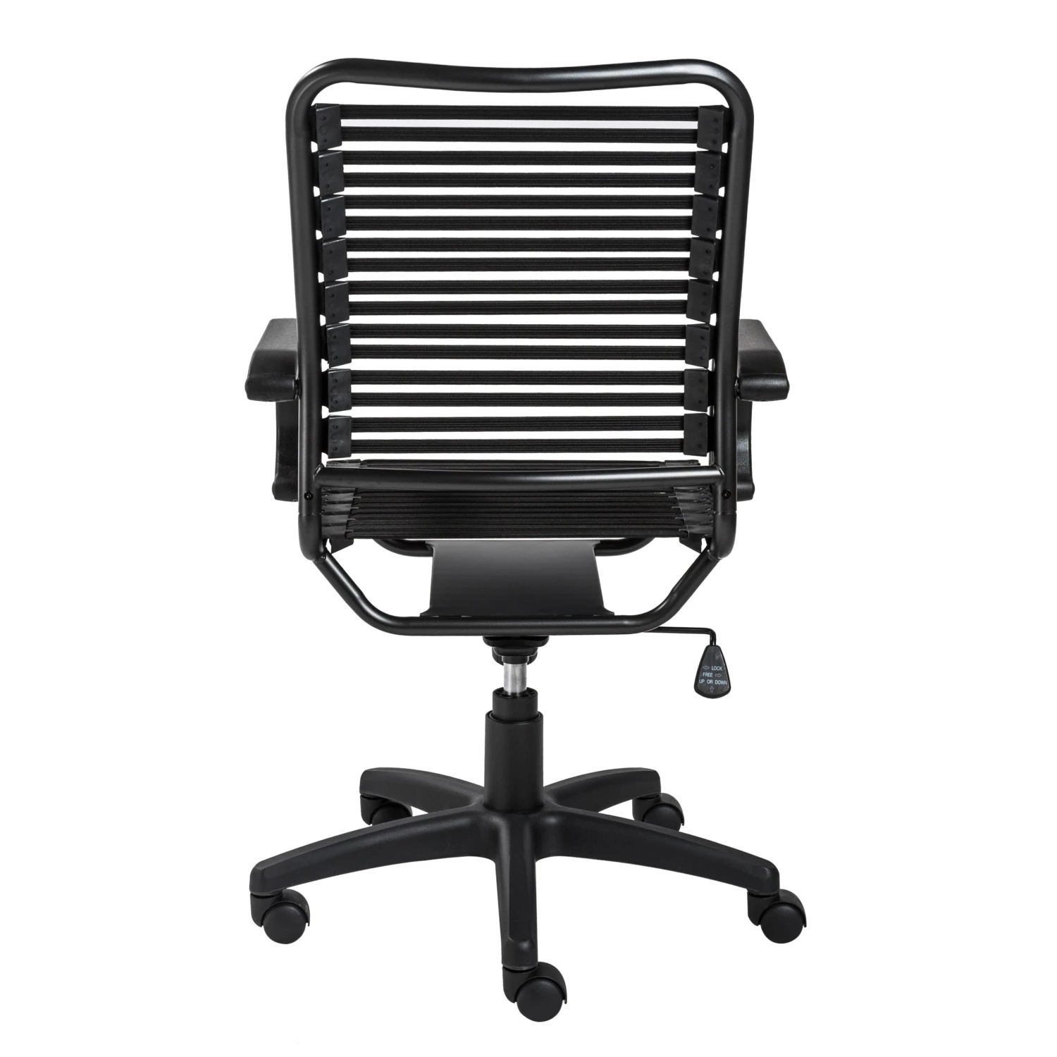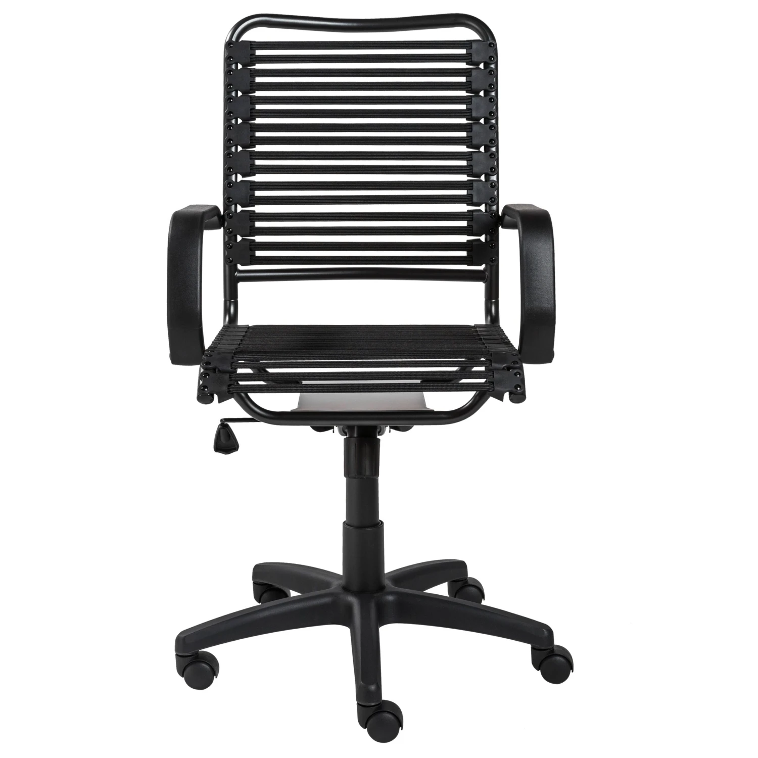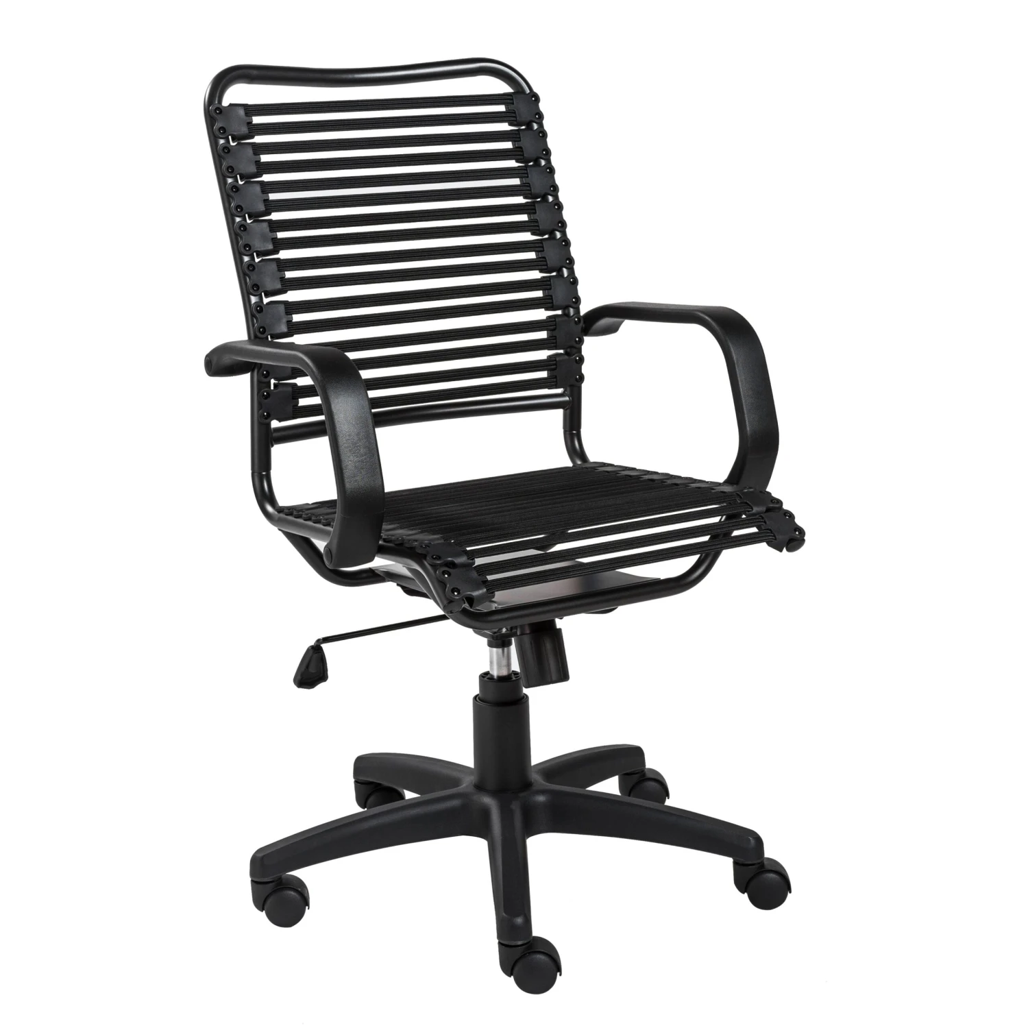 With a stylish and comfortable bungee back, this rolling office chair makes a statement! The sturdy base allows for easy rotation, and the structure of this chair makes it comfortable all day long. In a matte black finish, this chair will suit any modern office!