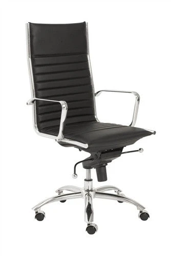 Read those extra-long emails in complete comfort on this well-padded leatherette office chair with a high back for great support. You’ll enjoy the eye-catching chrome accents, as well as the lack of scratches on your floor (thanks to hooded casters). Adjust the tilt, swivel, and height to your liking.