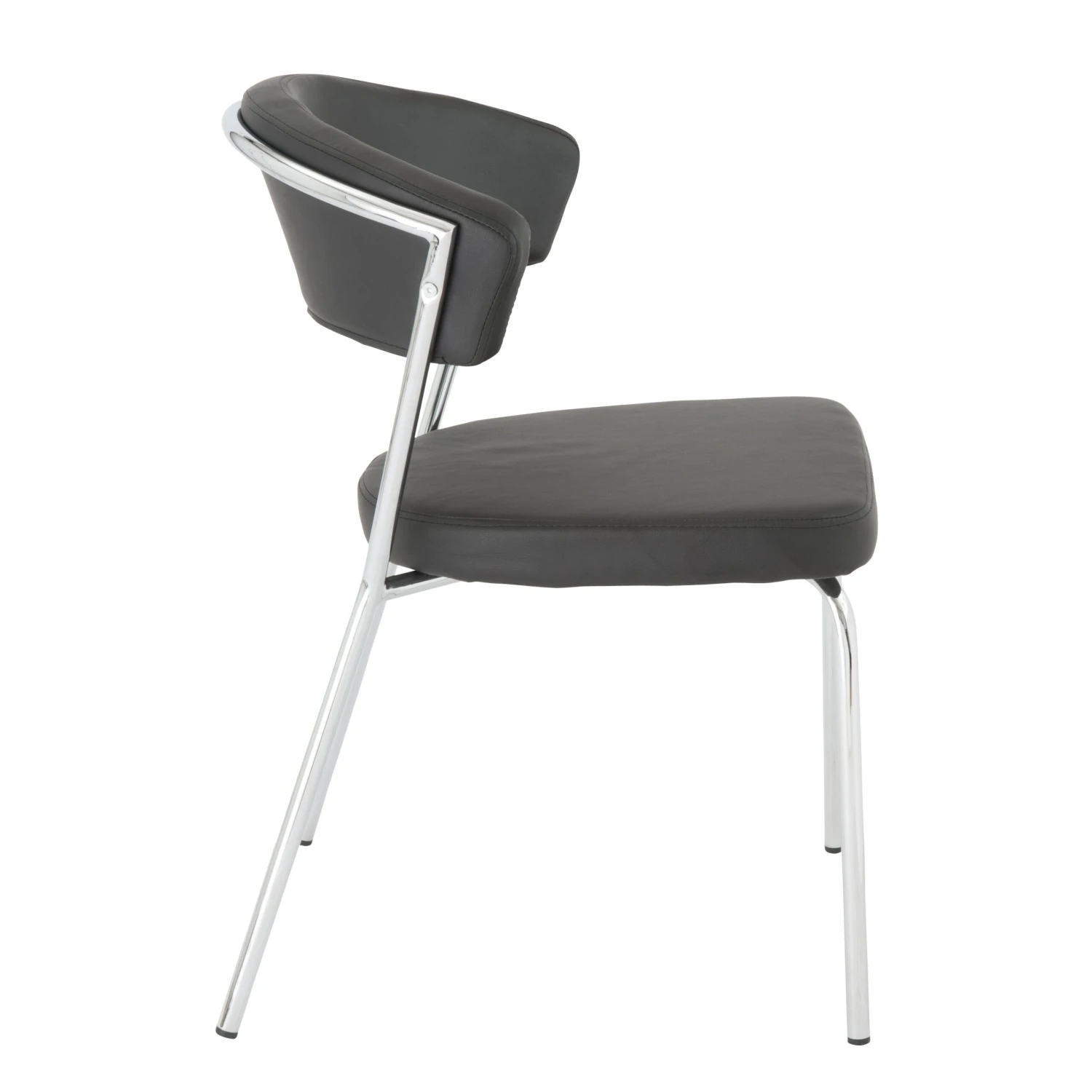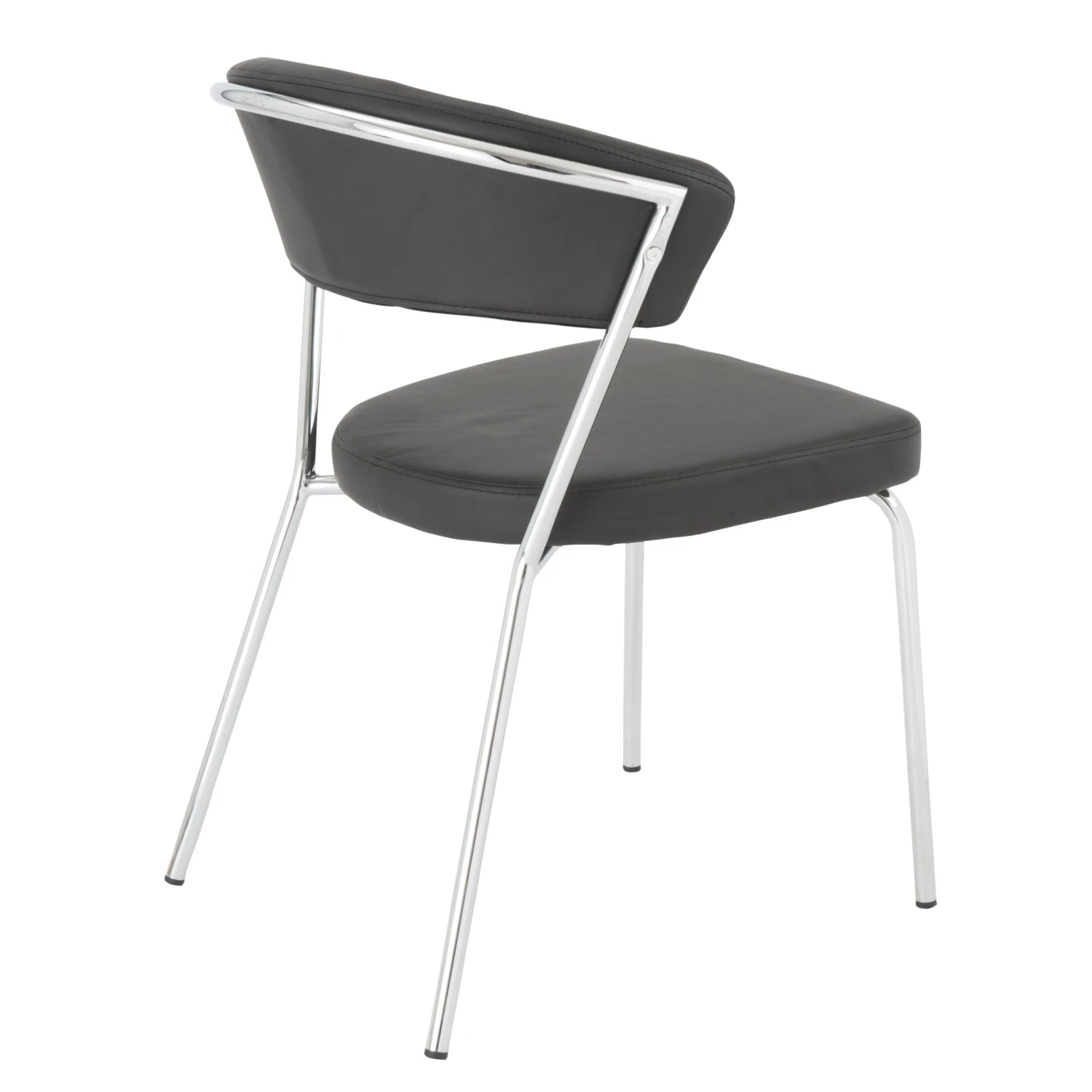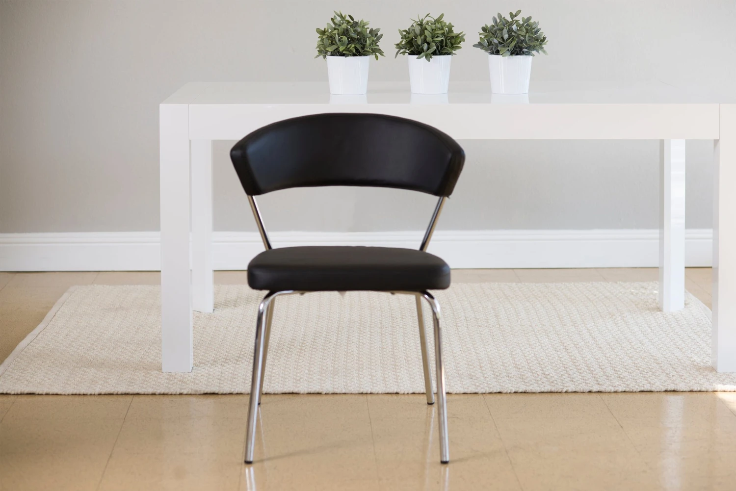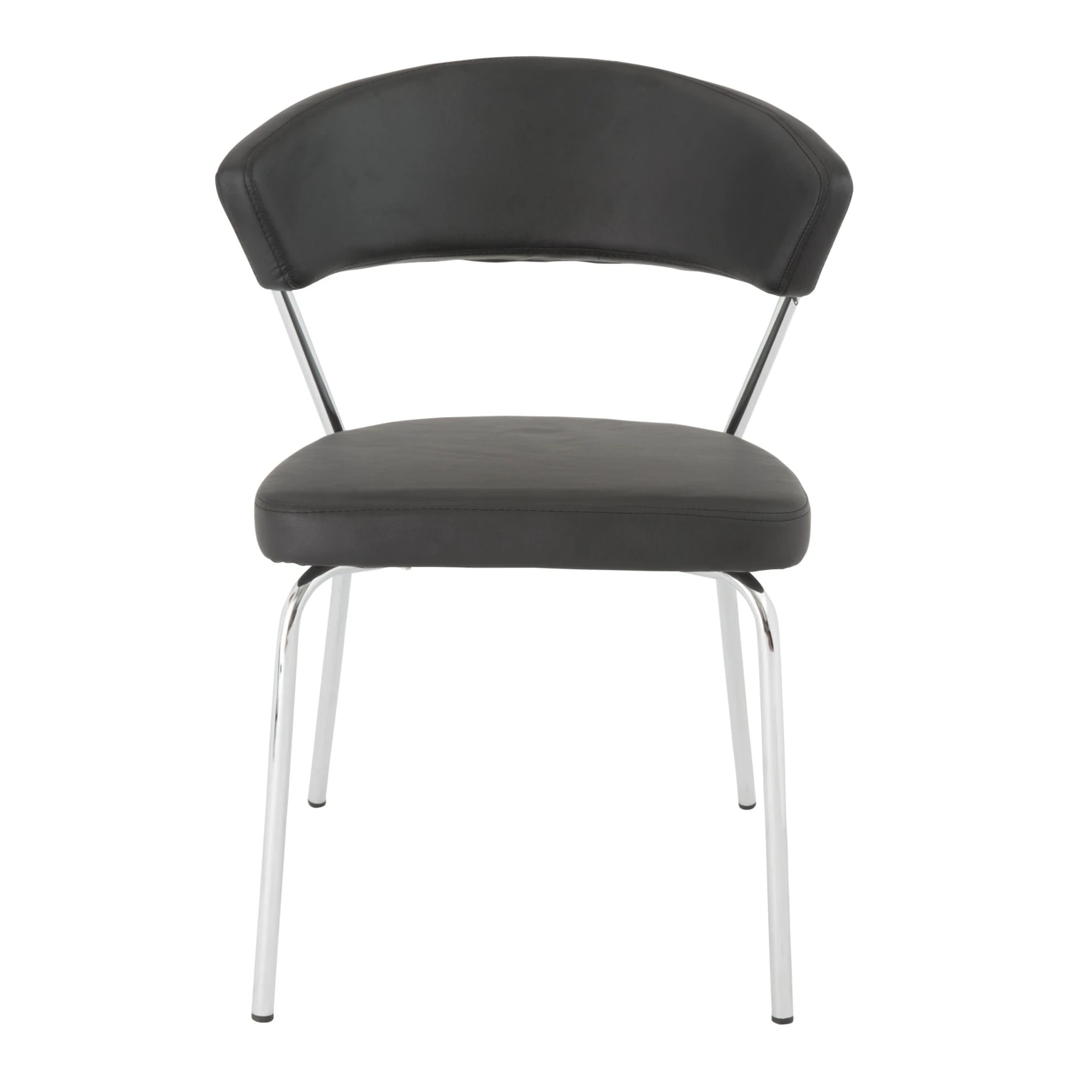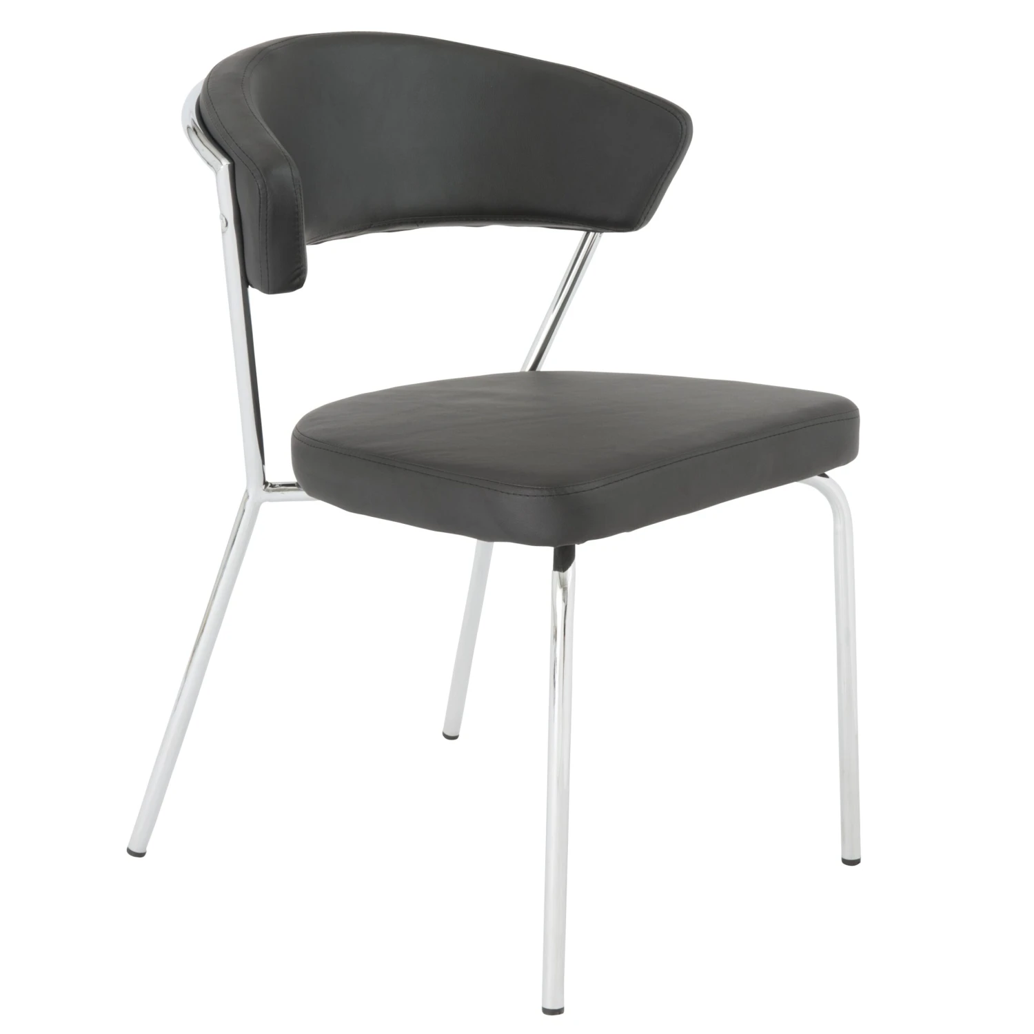 Soft angles and soft seat–this guest or conference chair is made from black leatherette stretched over a comfortable foam cushion. Its stability is provided by round chrome steel legs and frame, and the wide, curved back adds additional back support. These chairs are designed with comfort in mind. Use as extra guest chairs, conference table chairs, or seating in your waiting area. This item comes as a set of four.Â