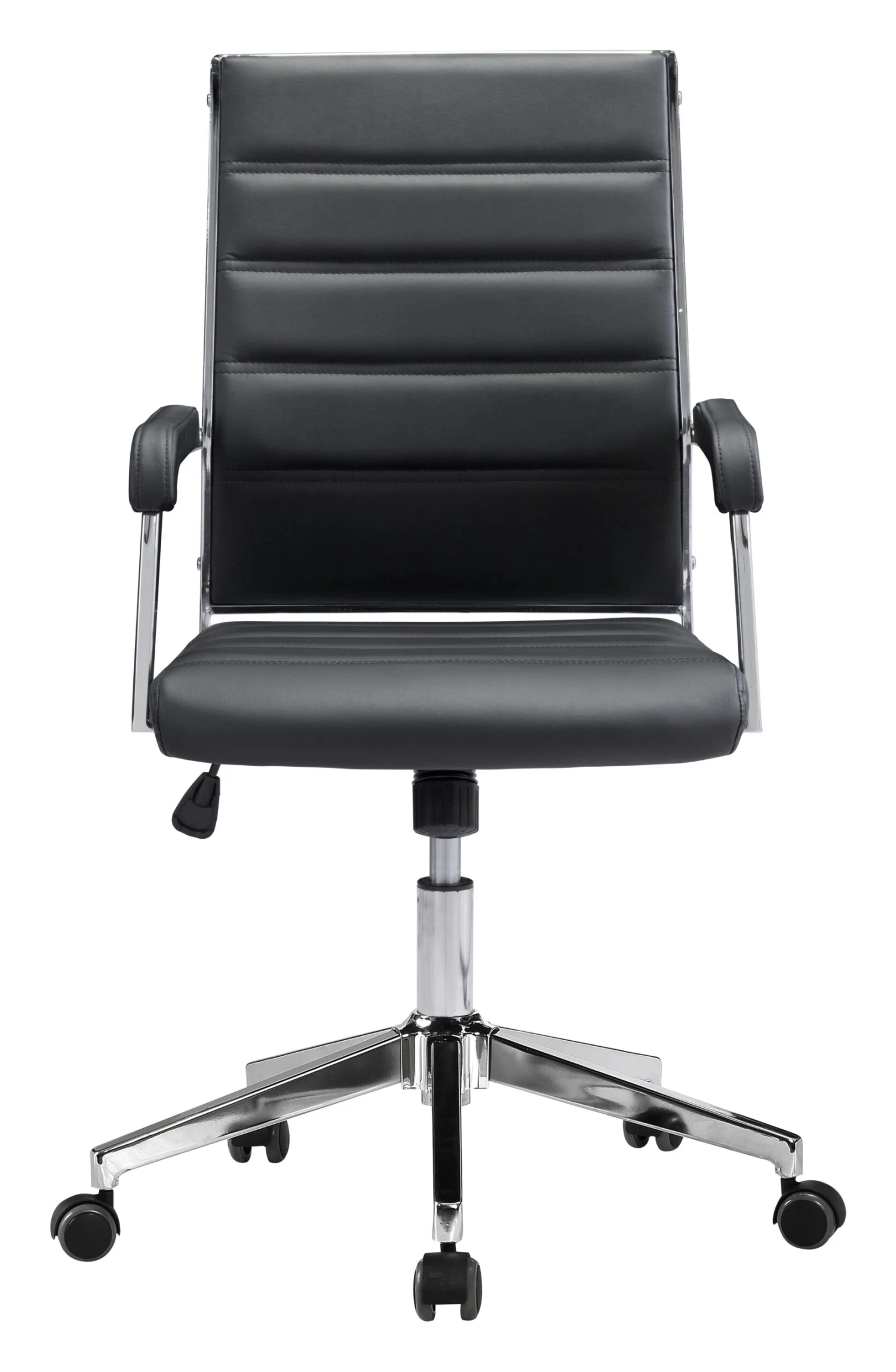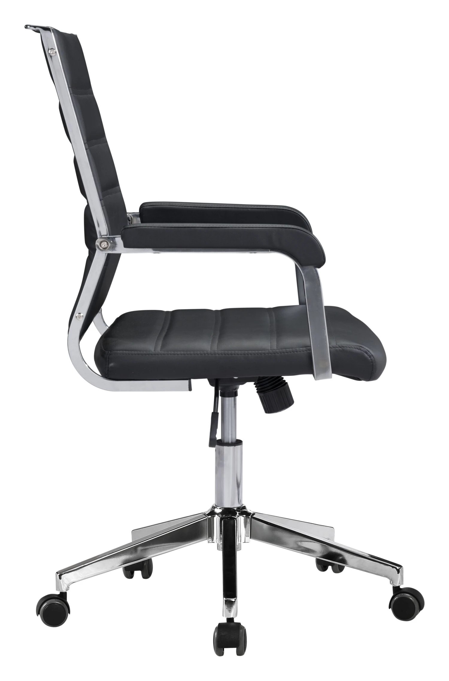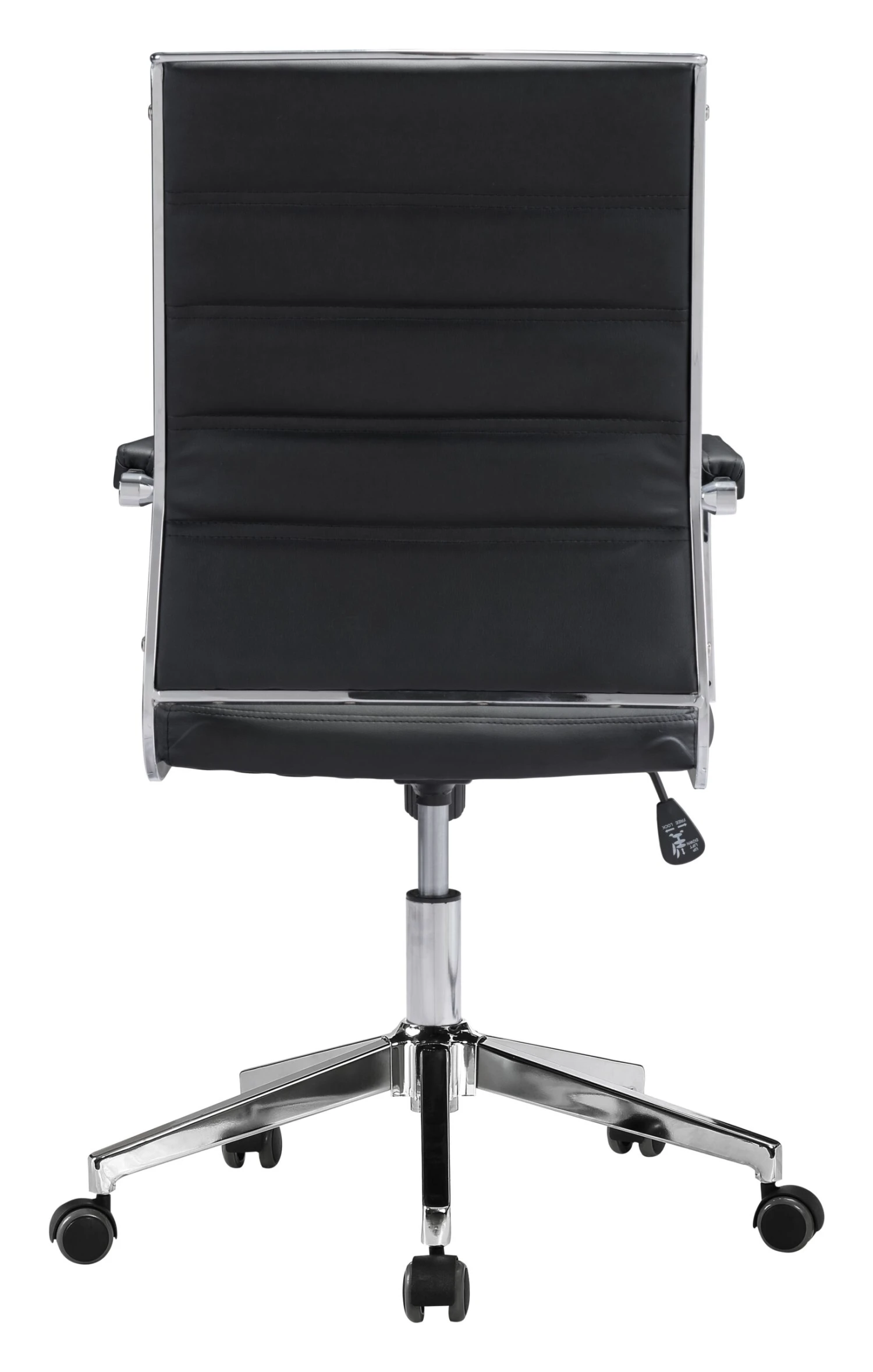This sleek and fashionable office chair by premium manufacturer Zuo brings some elevated simplicity to the office.ย Swivel, roll, and sit back in comfort in this modern office chair.ย It’s covered in a heavy duty vinyl and steel frame for durable performance and endurance over the years. Plus, the frame and base are built with chrome plating for added shine. Built to support up to 330 pounds.ย ย ย