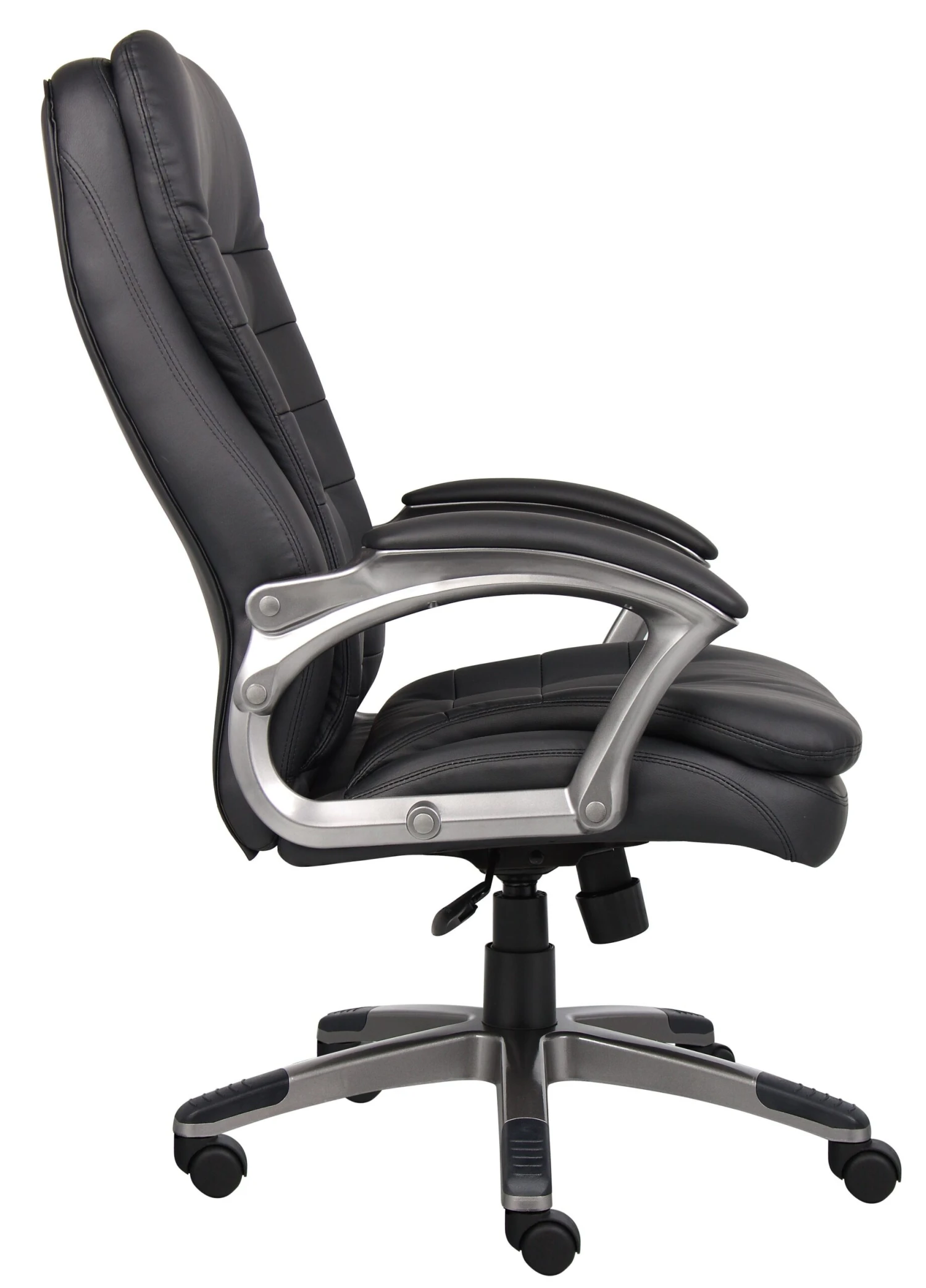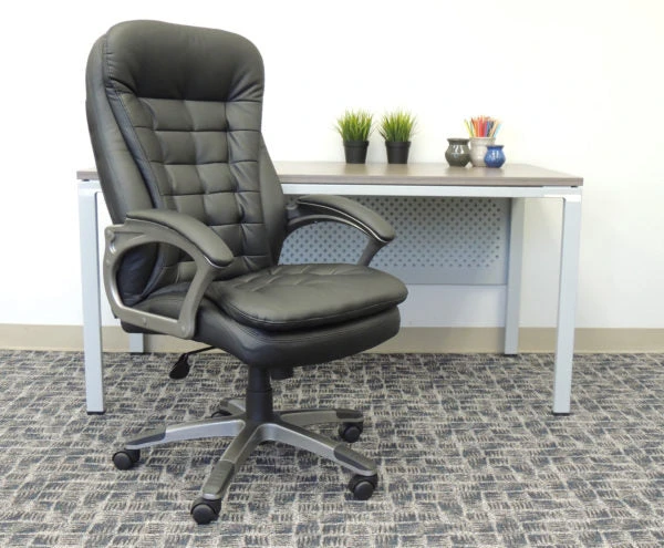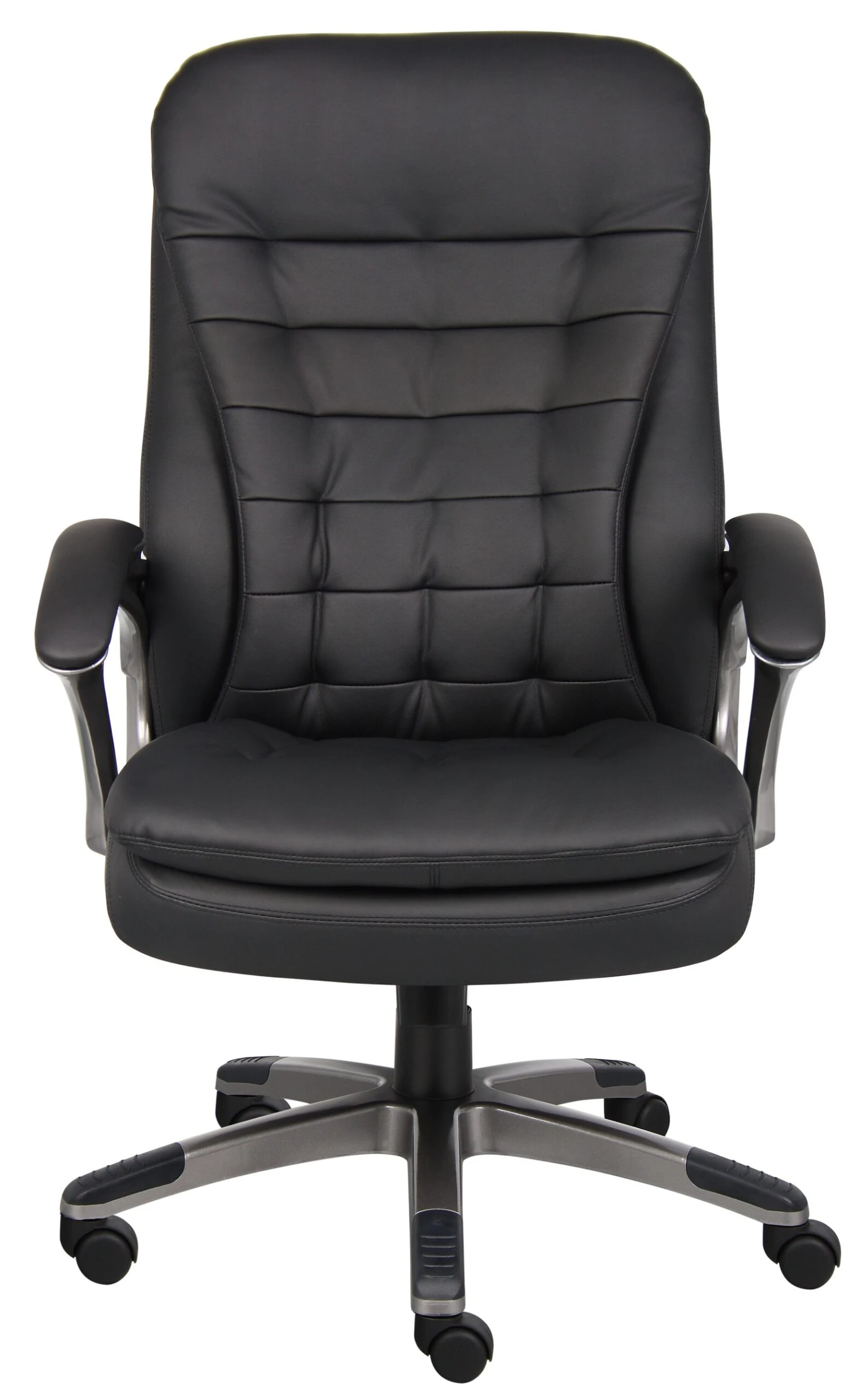 Comfort and stability–find both in this gorgeous chair. It features a crisscross design on the back and ample pillow top cushioning on the seat, and the pewter makes an eye-catching accent on the arms and base. The wide base provides stability and support, and the hooded double wheel casters allow for easy mobility. It has a spring tilt, pneumatic lift, and padded arms.