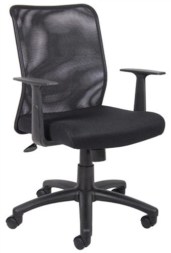 Stay cool even in August on this mesh chair, designed for perfect temperature control, as well as support. Additionally, this chair boasts extra padding, tilt adjustment, pneumatic height adjustment, and a sturdy black base.