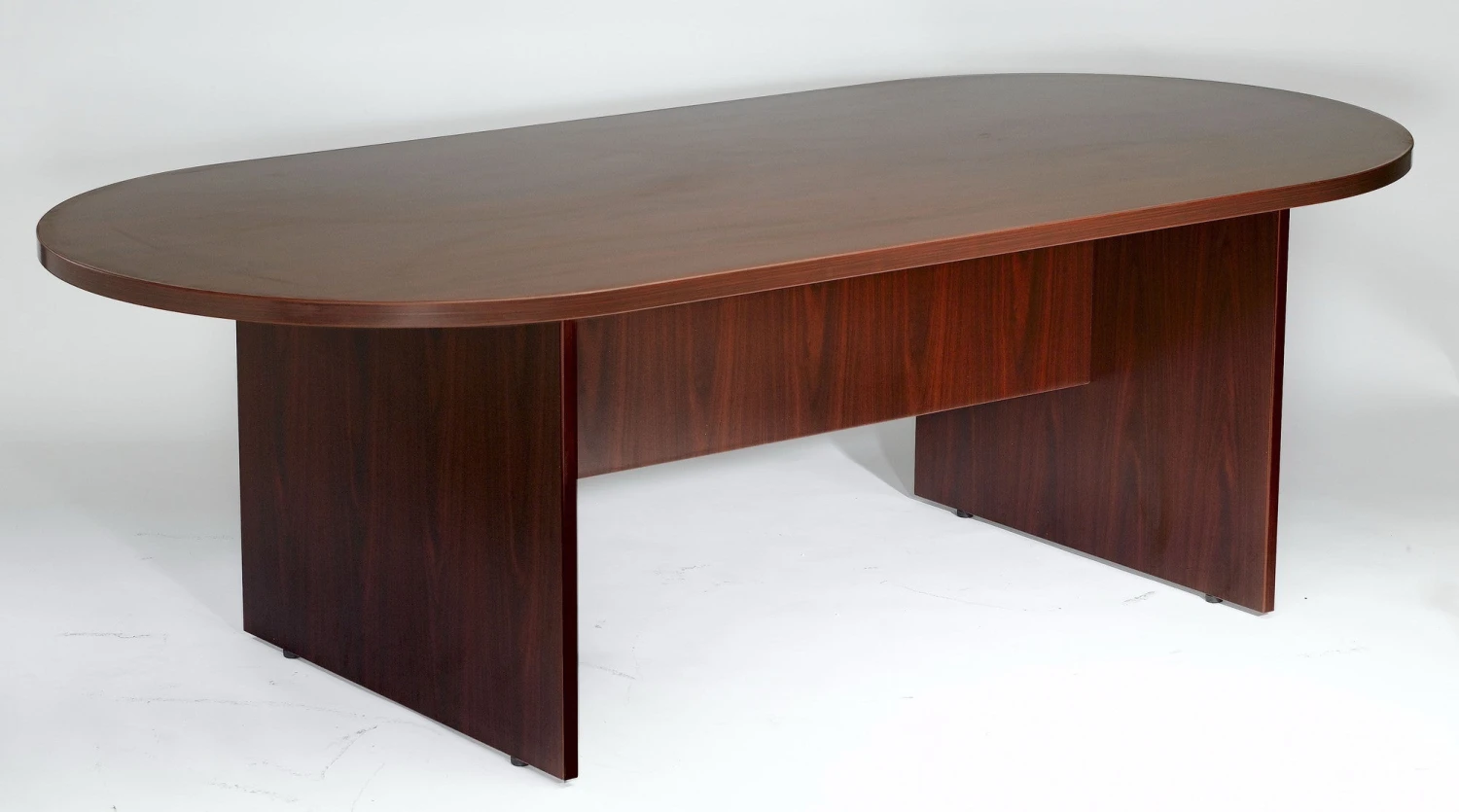 This “racetrack” style conference table is made with integrity by Boss Office Products and finished in a smooth cherry, a stately mahogany, or a modern driftwood. It offers a contemporary look that will go with any decor, and also is of a premium quality that will stand up to daily use for years to come. Depending on the size of your team, you can purchase the 6 foot version, the 8 foot version, or the 10 foot version!