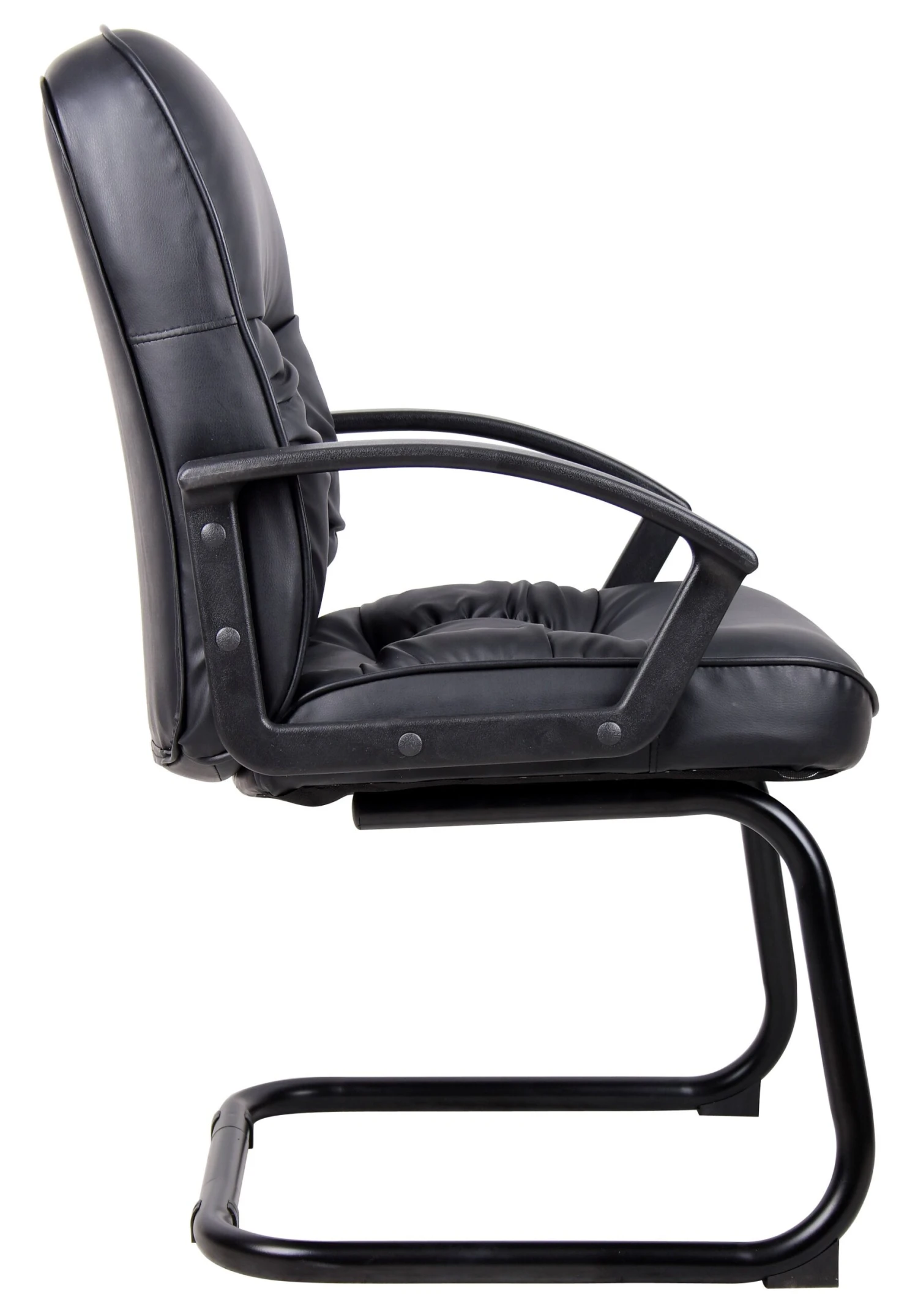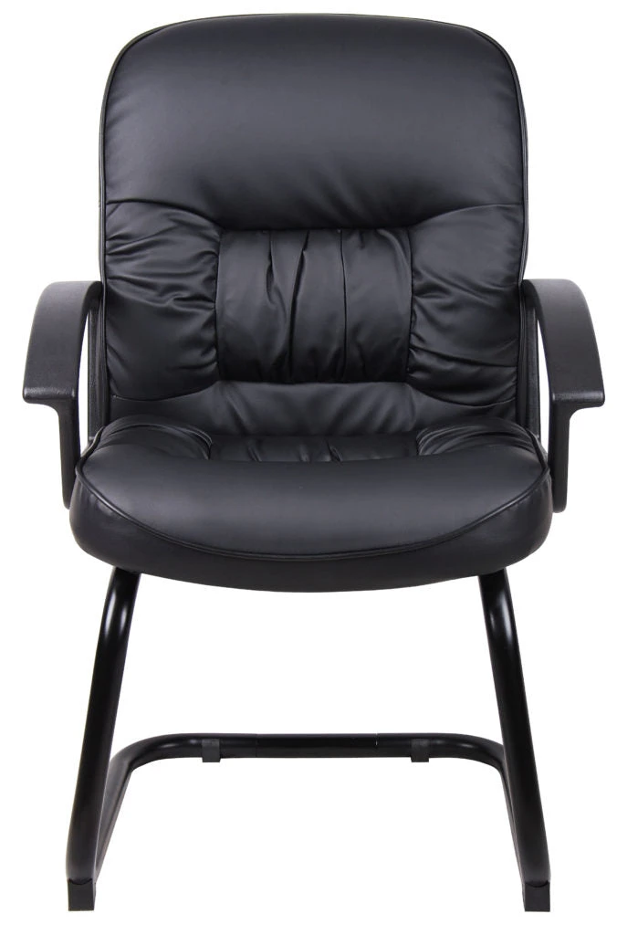 Sturdy and durable, this guest chair is a surefire way to ensure your guests are at ease in your office. It features a soft faux leather upholstery stretched over ample padding on the back and seat, with sturdy arms and a steel frame. The s-design adds elegance and charm.