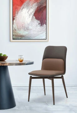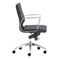 This elegant, sturdy office chair from JLA features a soft faux leather seat in chocolate, which goes nicely with the lighter finish of the wood frame.ย It will add a unique look to your office and a sturdy place to sit.