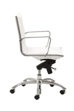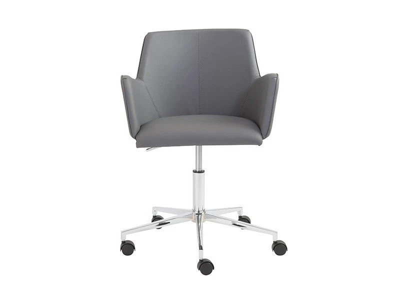 This elegant and unique chair offers a cozy place to sit and log the work day. Its raised arms add a great look and add to your comfort as well. The clean, modern lines of this piece will add a fresh flair to any space, and the sleek chrome base with premium casters adds to the minimalistic look. The chair is also height adjustable with a gas lift so you can work at the perfect height.