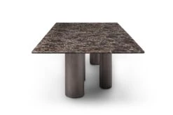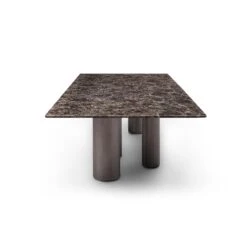108″ High-Gloss Brown Marble Conference Table With Bronze Legs