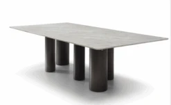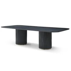 120″ Black Marble Modern Conference Table With Marble Column Bases