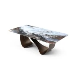 94″ Conference Table With Unique Ceramic Top & Brushed Bronze Base