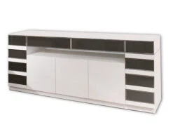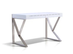 White Lacquer Conference Table With Inlaid Glass & Gray Mirrored Legs