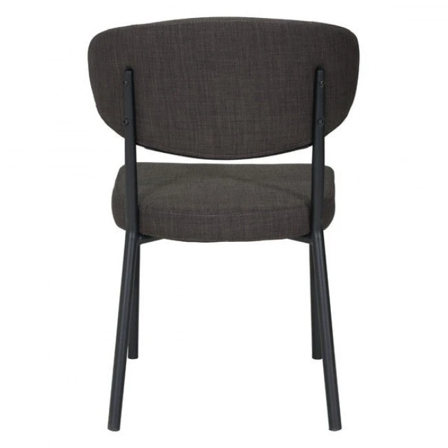 Need a chair that will blend with any modern office design? This is it. Its curved elliptical back adds a dramatic flare while the solid painted steel frame provides stability and support. This striking design includes a charcoal gray poly line upholstery. Use as a guest chair in your office, seating in your waiting area, or as conference room chairs. This item comes as a set of two.