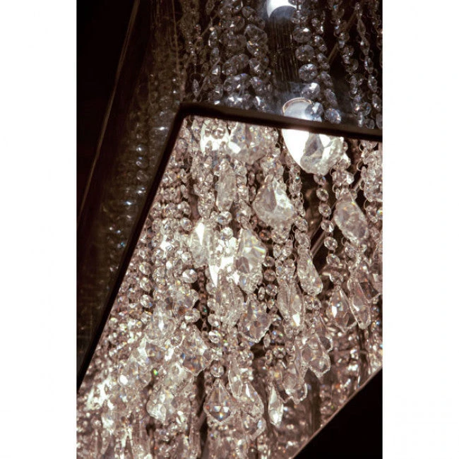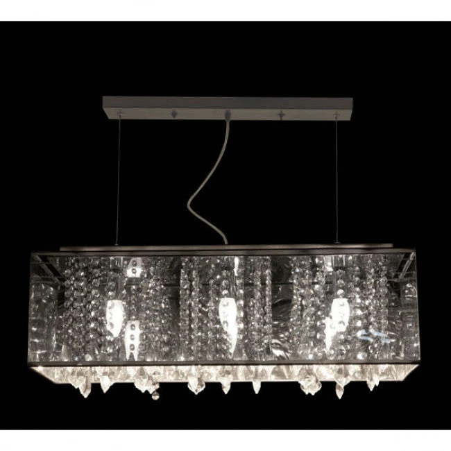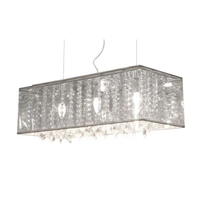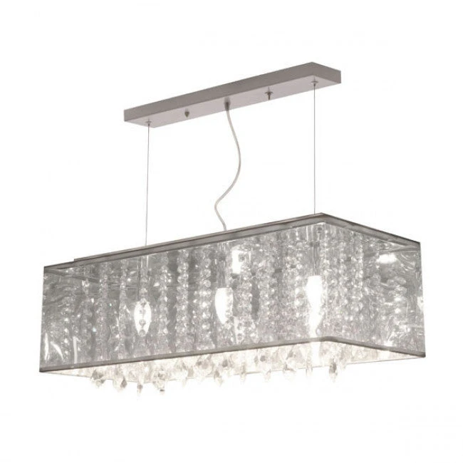 Bold, bright, and beautiful, this box-style hanging ceiling lamp is a great way to add a dramatic flair to your modern office. It features a translucent metal shade and is filled with dangling crystals that reflect the light in hundreds of directions.Â