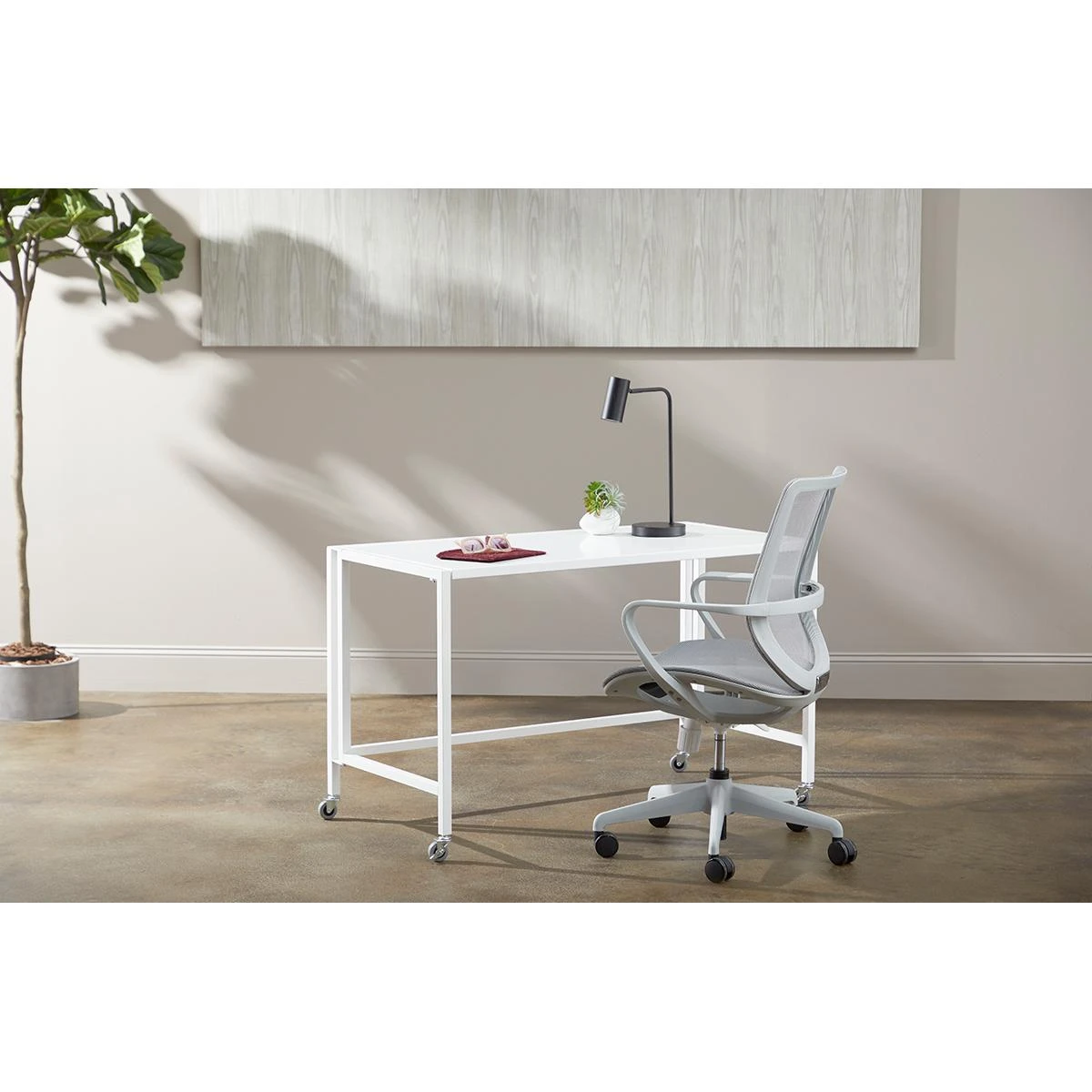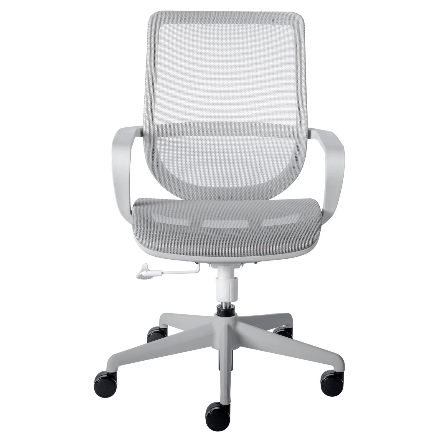 Whether for a small project or a large one, this chair offers maximum durability through a tough nylon base with rolling caster wheels paired with a mesh back and seat. The solid construction adds to the comfort of this chair, with dense mesh providing a conforming structure. A locking function and adjustable height make this the perfect fit for an office or in the field.