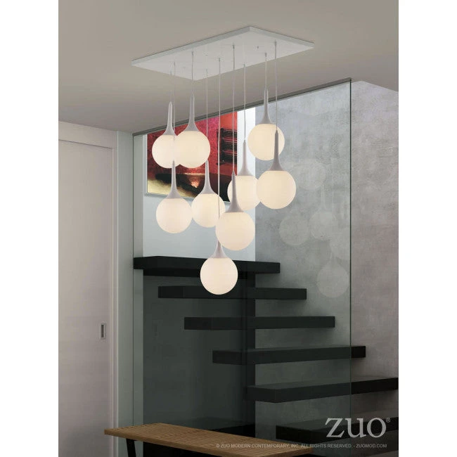 Elegant and whimsical, this beautiful hanging ceiling lamp will create an ethereal and fantastical feel in your office, conference room, or waiting area. It features white painted cords and frosted glass bulbs, and will create a striking visual experience no matter where you place it.