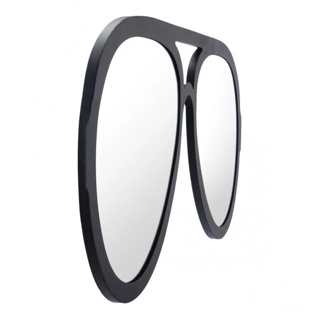 Cheeky and fun, this aviator sunglasses-style mirror is sure to make your guests style. The bold frame is make from steel and painted black, and the mirrored glass is clear and reflective.