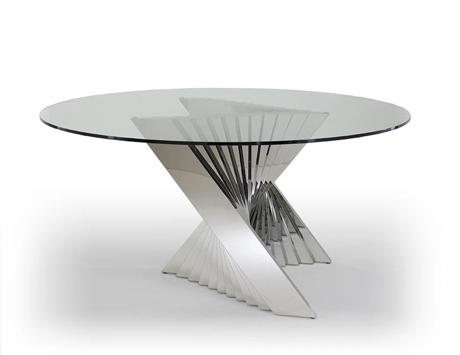This elegant circular meeting table combines a sturdy chromed steel base and a premium circular glass top for an altogether unique and modern look. The geometrically rippled base sets this unit apart from any other meeting table you might find, and is sure to impress your customers or clients from the start. It is manufactured with precision and premium quality by Sharelle.