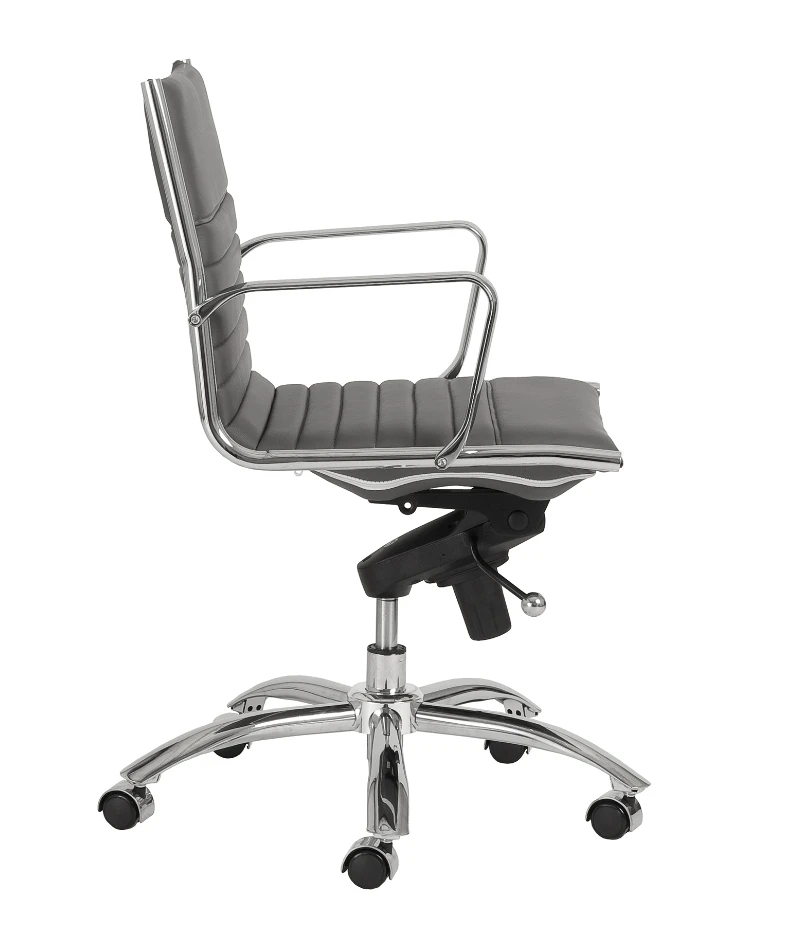 Sink into the cushy foam seat of this granite-colored leatherette chair and attack those deadlines. The chrome-coated base and armrests add visual interest, while the steel-hooded wheels protect your delicate floors. Customize the tilt and swivel, as well as the height using the gas lift.