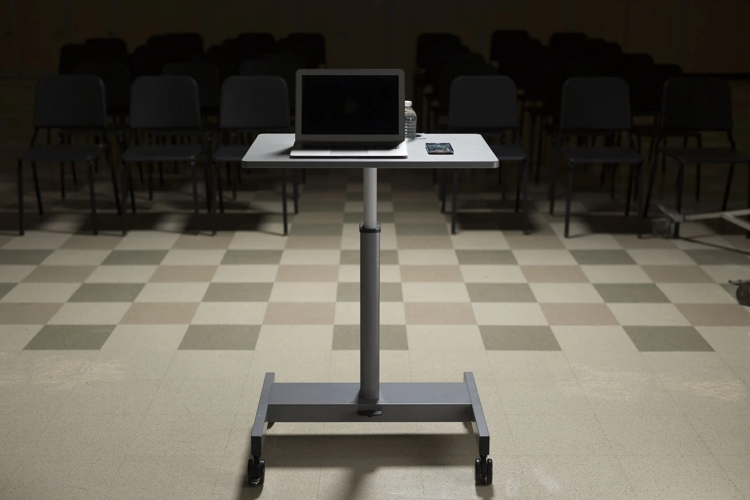 If you’re on the go all the time, this rolling, sit-stand office desk is for you. It features sturdy castors to easily move it around the room as well as a brake to stay in place, and you can adjust the height with an easy crank. it hasย a pencil and water bottle holder built into the desktop, and a hook to hang a back or backpack.