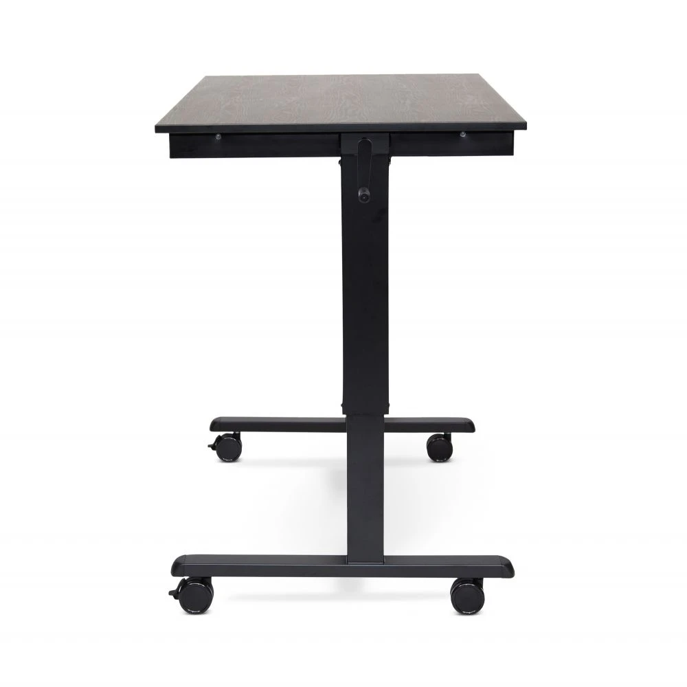 Live a healthier work lifestyle with this sit-stand office desk. It operates with a simple crank, making it easy to switch positions during the day. It also features four wheels so you can move the desk around the room, and brakes, for stability when you just need to get work done. The top is made from a high-quality laminate and the base from a sturdy steel.Â