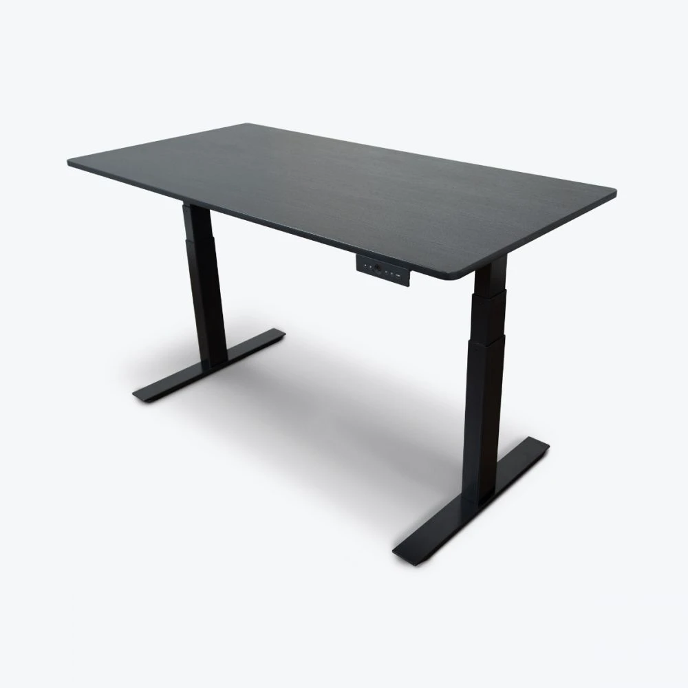 Make your work day more comfortable with this sit-stand office desk. It features a black oak top with a steel base. Theย electric height adjustment is operated with a single summary on the control panel, making it as easy as pie to adjust the height. You can even program it to have different users,ย to easily to switch between people. Stand during the work day for a healthier lifestyle with this classic desk.