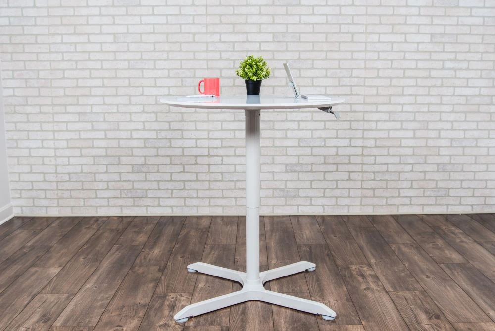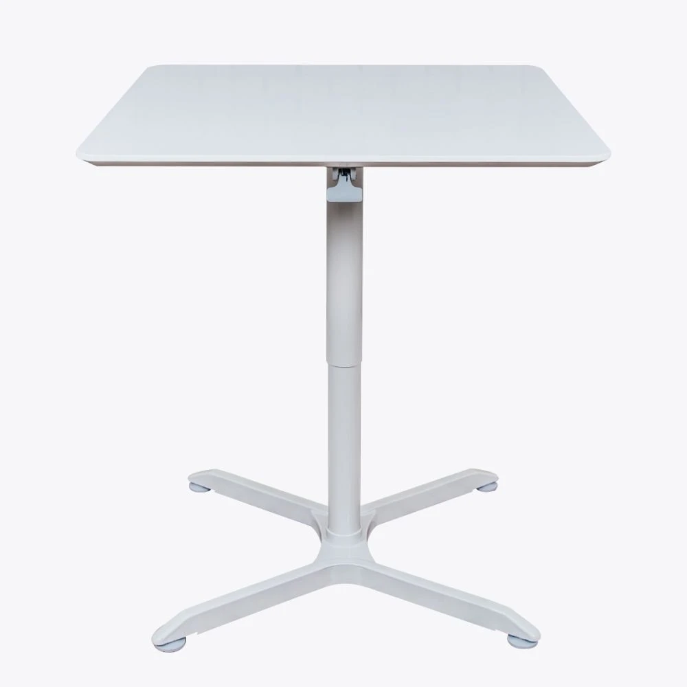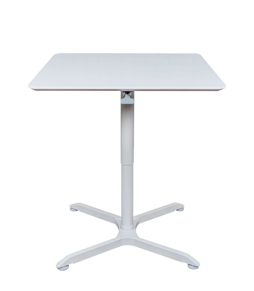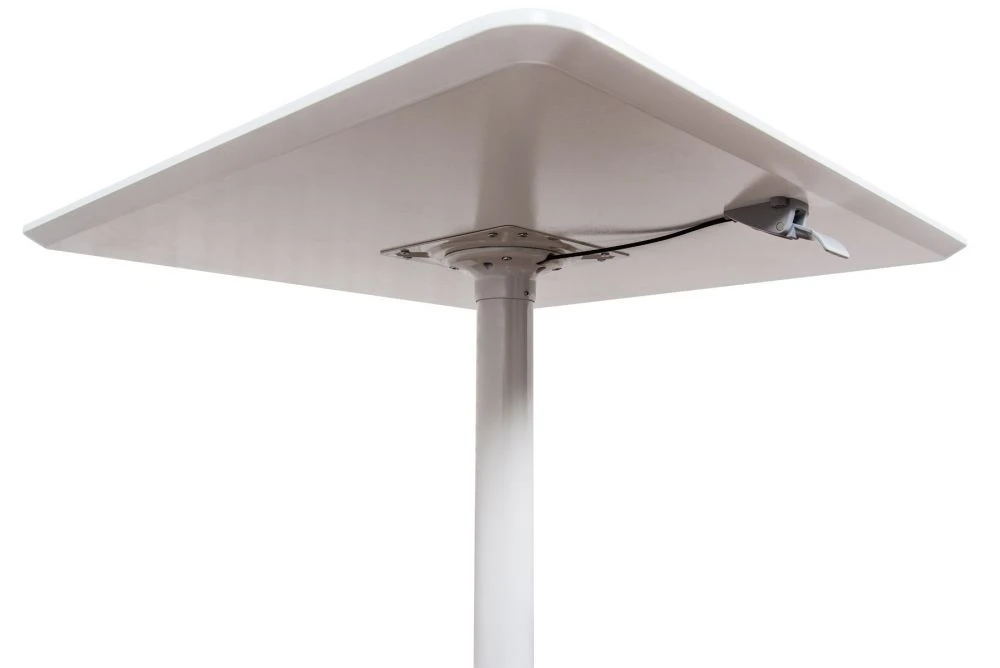 This square white meeting table is a great option for a variety of spaces. It’s small, compact, and has an adjustable height–use in oddly shaped rooms, small rooms, and to meet a variety of needs for your employees. It is also versatile–use in the lunch room or during a cocktail hour event. It has a concealed lever for easy adjustment.