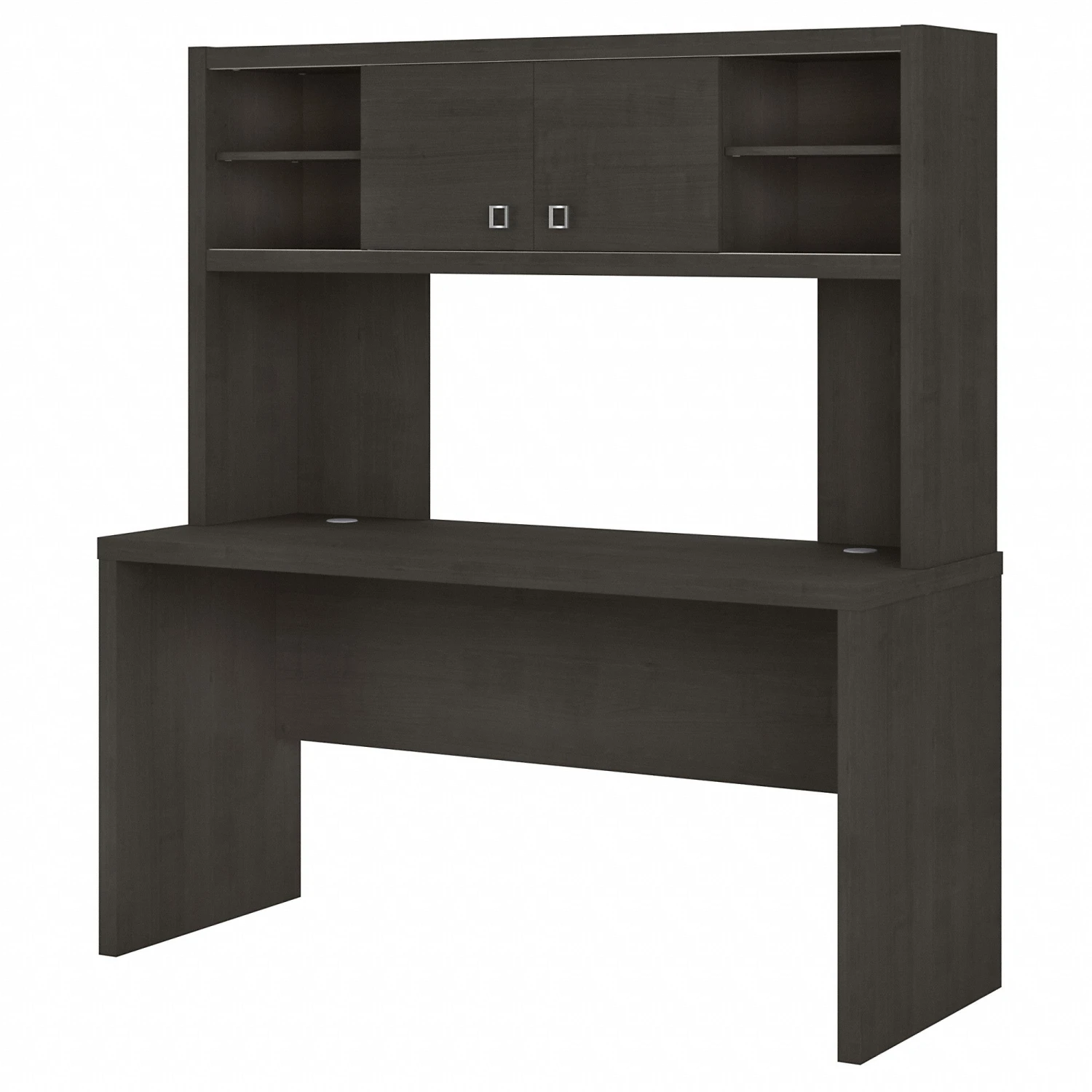 This unique, modern desk offers an elegant, functional design to inspire today’s professional. Wide lines and a thick, durable surface create a strong presence while a thermally fused laminate finish protects the office desk throughout years of everyday use. Spread out on the spacious 60W desktop with your computer, paperwork or any other tasks of the day. Adding the coordinating Hutch makes organizing your workspace simple. Each outer compartment in the Hutch contains an adjustable shelf, and sliding doors offer flexible placement in the center or on the ends for concealing work materials or displaying decorative accents.ย