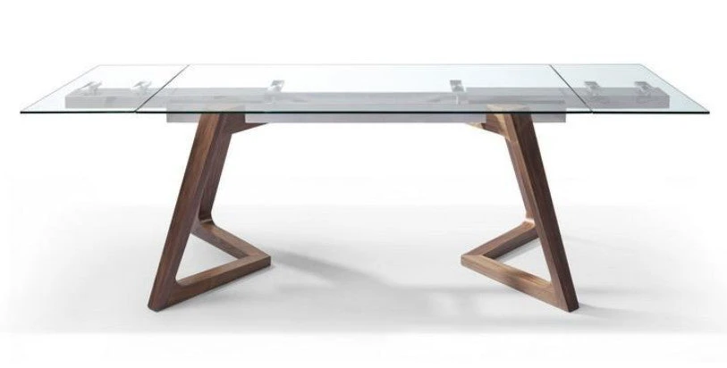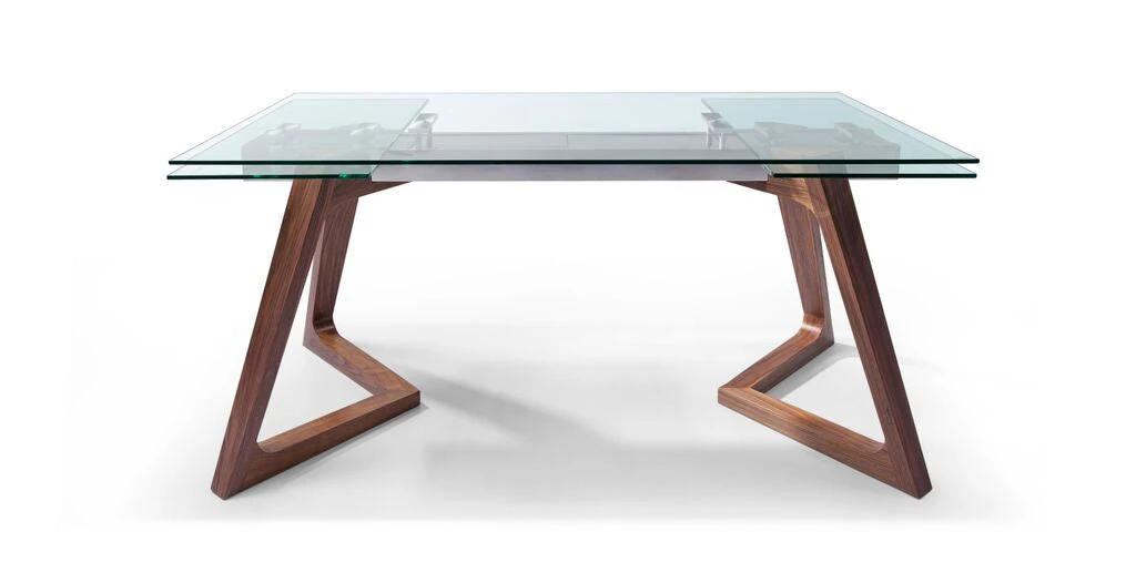 This elegant table offers a 1/2″ thick premium glass top that extends from 63″ to 95″ in width, enabling this piece to be used either as a huge executive desk or as a conference table. It can serve as the centerpiece for your entire office if you so choose. Its wood legs are finished in walnut and feature a unique angled appearance for an extra modern look.