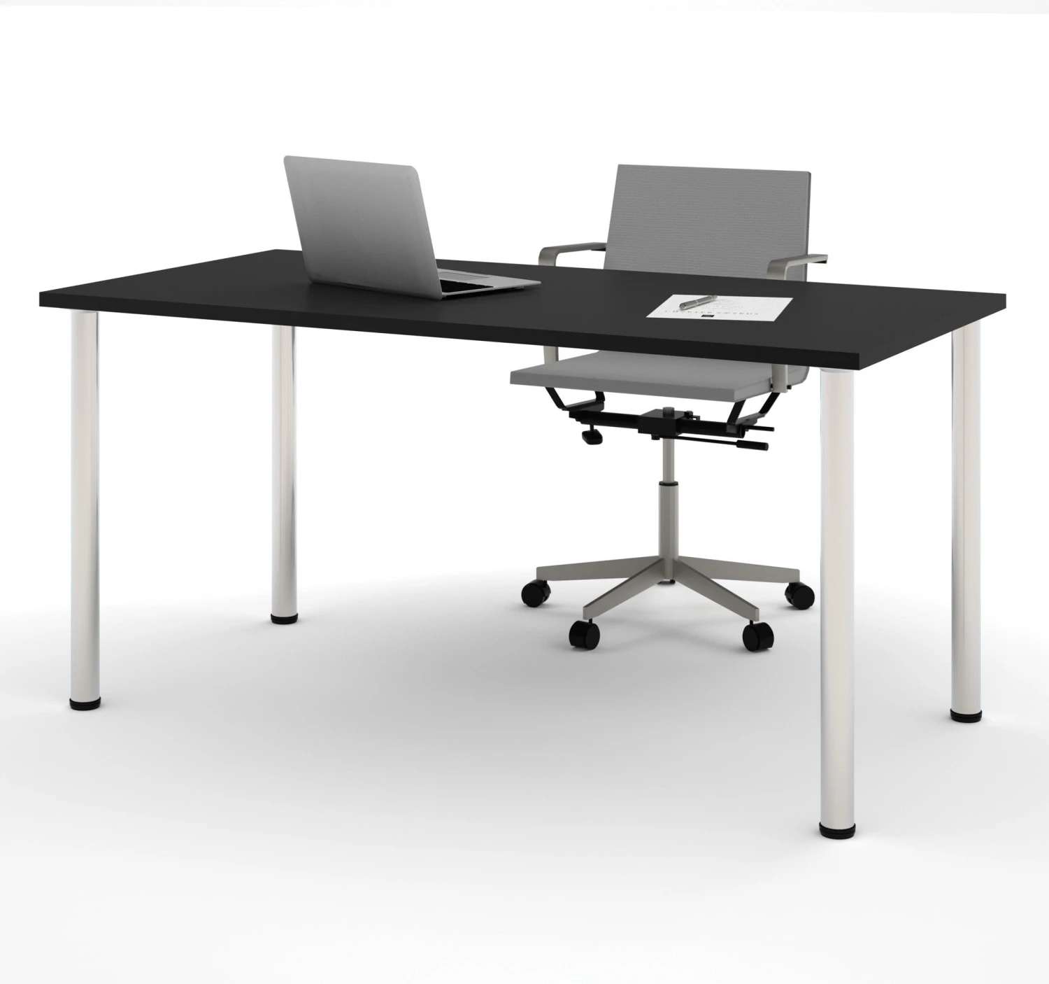 This elegant and contemporary 60″ desk boasts a minimalist design that will bring a modern look to any space. It also features premium quality, with a durable 1″ commercial grade desk top that is coated in melamine to prevent scratches and stains. The round metal legs are sturdy and add to the look with their glossy silver finish. The legs also have levelers to make sure that no matter this desk is placed, it will be a stable place to work.