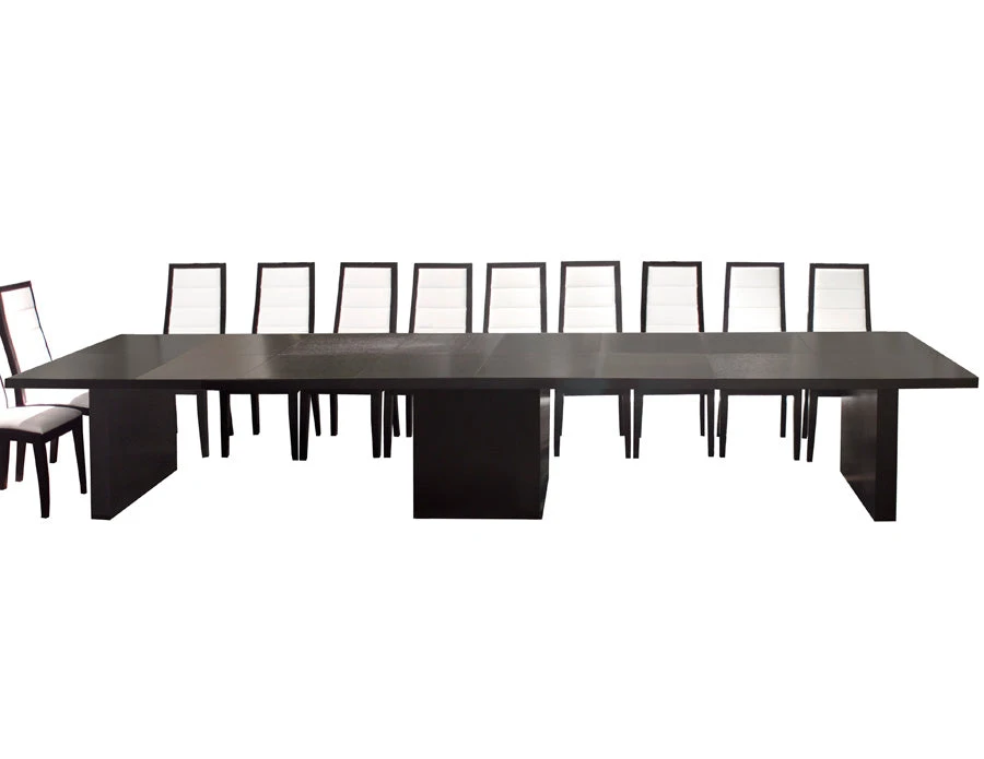 This phenomenal creation from Sharelle offers the capability to extend from 53″ all the way to 167″ wide.ย You can use it as a small meeting table that won’t take up much space, and then expand it as needed all the way to nearly 14 feet wide, seating over 20 people comfortably!ย Plus, there is no need for storage, because the extensions stay in the base of the table. Hidden wheels in the legs make it simple to pull out the extensions. In a sleek wenge finish, the table is incredibly attractive, with squared checkerboard, textured top and modern block legs.ย Its clean lines will add a great look to your space, and premium quality will mean you won’t be replacing this conference table for years to come.