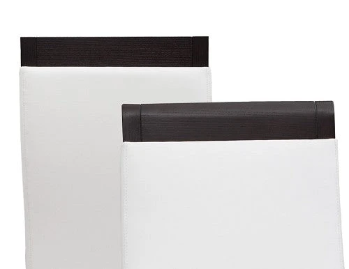 This elegant, modern conference chair features sweeping lines and a sleek white & wenge combination. The soft leather seat is a comfortable place to sit while you sit in a conference, and the dark wenge finish on the legs and chair top adds an elegant second tone to the white leather.