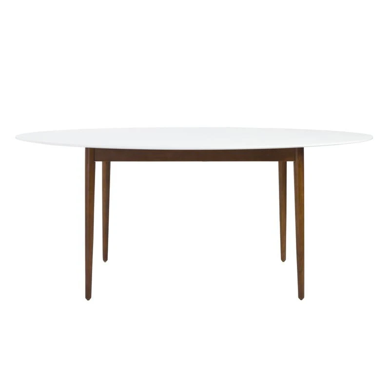 It’s a good day when you find the perfect meeting table for your unique space. This meeting table features a white matte lacquered top with solid ash wood legs with a dark walnut stain. The oval shape makes it easy to slide into rooms that are small or unusually shaped. Look no further for the ideal meeting table for your office conference room.