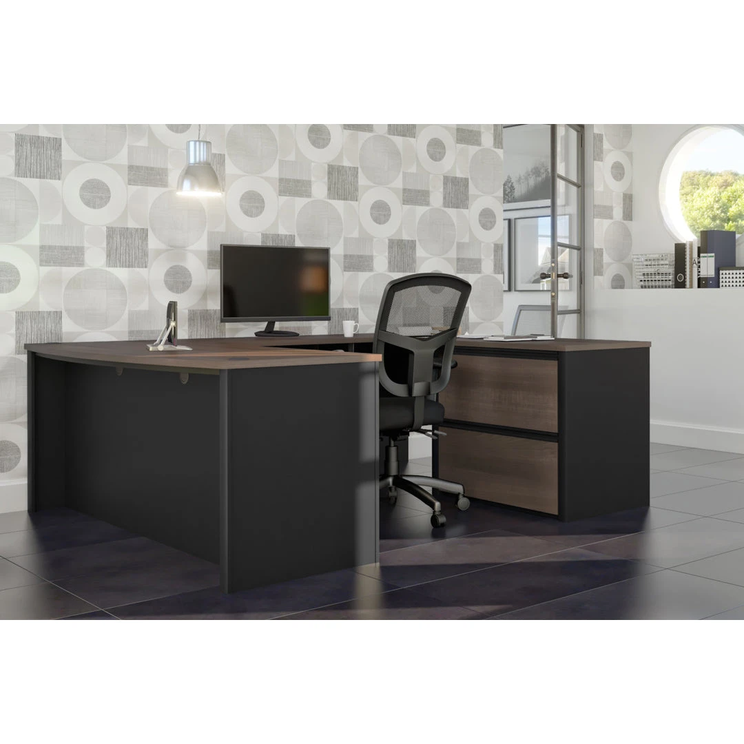Your office can be a standout in form and function with this attractive U-shaped workstation from Bestar. Do your patrons need to sign particular forms or read information about services? Label and store necessary documents in two integrated, oversized file drawers. The work surface will handle years of use without damage due to the durable melamine coating. Includes a 10-year warranty from Bestar. In need of even more storage for files? Include the optional matching file cabinet and bookcase.
