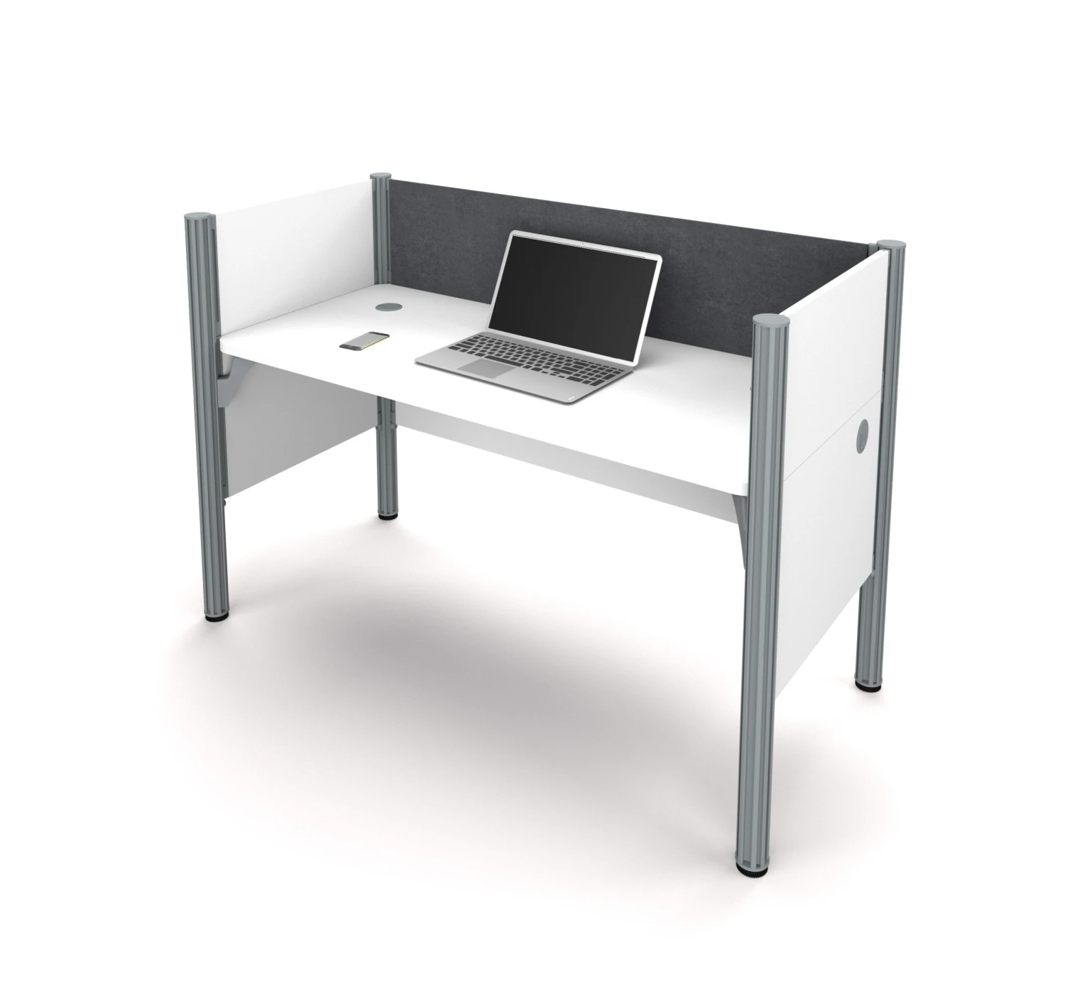 This premium and attractive workstation from the Pro-Biz collection has it all.ย It is incredibly durable, and comes with a 10-year warranty to prove it.ย It features strong I-Beam aluminum legs that are adjustable, and they come with a slide lock assembly, making installation quick and easy.ย The wood is finished in a modern white and coated in melamine to prevent any scratches or stains.ย The edging is high grade and shock resistant.ย The functionality of this piece is also excellent, including a wire management system to keep your area cord free and a wood panel for privacy while you work.ย The gray tack board also provides a nice color contrast and a great place to pin pictures or reminders. The pieces are interchangeable so that as you expand your business with the Pro-Biz collection, you can mix and match parts to meet your business needs as you grow. If you need additional space for storage you can add on the matching file cabinet that comes assembled!