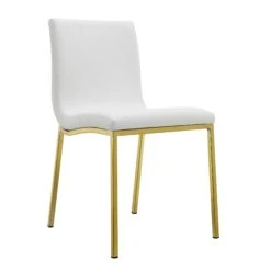White Leather Guest Chair With Brushed Gold Stainless Legs (Set Of Two)